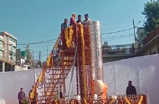 ഉജ്ജയിനി: ജ്യോതിര്ലിംഗ മഹാകാല് ക്ഷേത്രത്തില് രാജ്യത്തെ ആദ്യ ജലസ്തംഭം ആര്എസ്എസ് സര്സംഘചാലക് ഡോ. മോഹന്ഭാഗവത് അനാച്ഛാദനം ചെയ്തു. 60 കിലോഗ്രാം വെള്ളി കൊണ്ടാണ് മഹാകാല് ക്ഷേത്രാങ്കണത്തിലെ കൂറ്റന് ജലധാര നിര്മ്മിച്ചിട്ടുള്ളത്. ജലത്തിന്റെ പവിത്രത ഉദ്ഘോഷിക്കുന്ന നാല് വേദമന്ത്രങ്ങള് സ്തംഭത്തില് കൊത്തിവച്ചിട്ടുണ്ട്. നേരത്തെ മഹാകാലക്ഷേത്രത്തിലെത്തിയ സര്സംഘചാലകനെ നന്ദി ഹാളില് കളക്ടര് ആശിഷ് സിങ് സ്വീകരിച്ചു. മഹന്ത് വിനീത് ഗിരിയുടെ നേതൃത്വത്തില് സംന്യാസിശ്രേഷ്ഠരും ചടങ്ങില് പങ്കെടുത്തു. ഇന്ഡോര് മാല്ഗുഡി ഡേയ്സില് നടക്കുന്ന അന്താരാഷ്ട്ര ജലസമ്മേളനത്തിന് മുന്നോടിയായിട്ടായിരുന്നു ചടങ്ങുകള്. ലോകത്തിനാകെ ജലത്തിന്റെ മഹത്വം വിളംബരം ചെയ്യുന്നതാണ് മഹാകാല് ക്ഷേത്രത്തിലെ ജലസ്തംഭമെന്ന് സര്സംഘചാലക് പറഞ്ഞു.