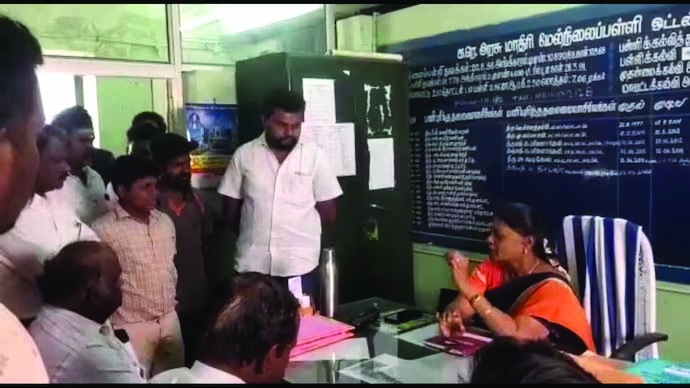 ദിണ്ടിഗല്‍ കെ.ആര്‍. ഗവ. സ്‌കൂള്‍ പ്രിന്‍സിപ്പലിനെ രക്ഷിതാക്കള്‍ ഘെരാവോ ചെയ്യുന്നു