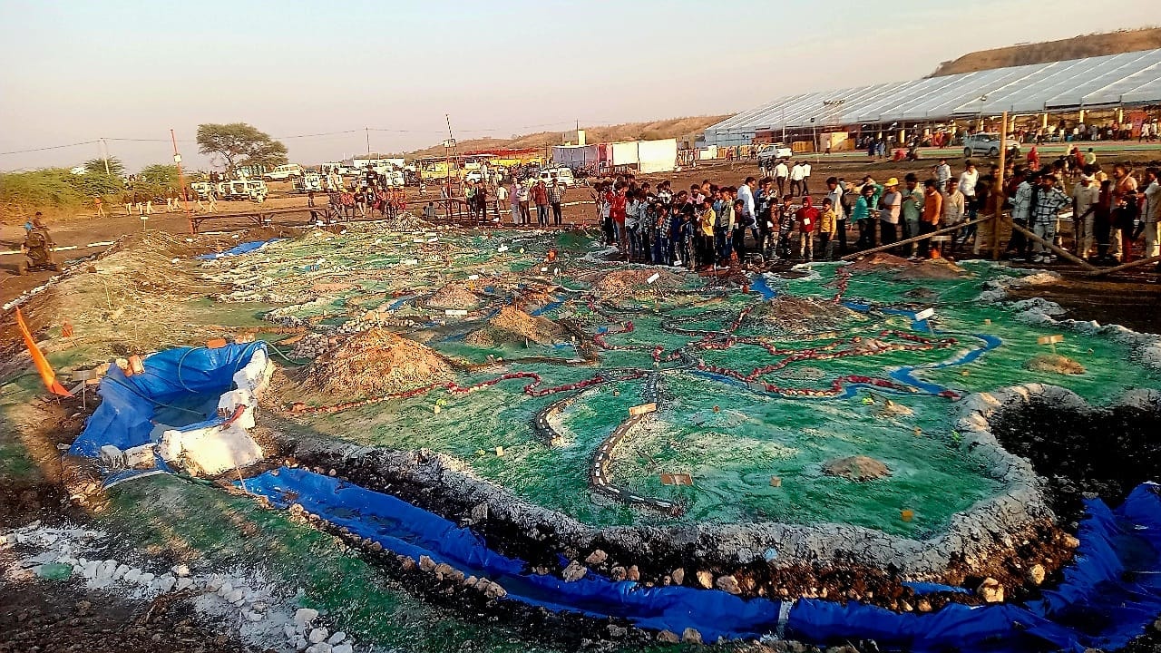 ഝാബുവ (മധ്യപ്രദേശ്): ഹത്തിപ്പാവ മലനിരകളില് 75000 നീരുറവകള് സൃഷ്ടിച്ച് ഭീല് ഗോത്ര ജനതയെ ആദരിക്കാന് 3ഡി രംഗോലി ഒരുക്കി വിദ്യാര്ത്ഥികള്. നാല് മണിക്കൂര് കൊണ്ട് 35000 ഗ്രാമീണര് തീര്ത്ത നീരുറവകള് നേരത്തെ വാര്ത്തയായിരുന്നു. മുഖ്യമന്ത്രി ശിവരാജ് സിങ് ചൗഹാന് അടക്കമുള്ളവരുടെ നേതൃത്വത്തിലാണ് ഹല്മ ഒത്തുചേരലിലൂടെ ഗ്രാമവാസികള് വിസ്മയം തീര്ത്തത്. ഹത്തിപ്പാവ താഴ്വരയിലാണ് ഝാബുവയുടെയും അലിരാജ്പൂരിന്റെയും ഭൂപടം കുട്ടികള് തയ്യാറാക്കിയത്.