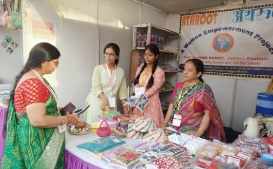 ജമ്മുവിലെ അഥ്റൂട്ട് സ്വയംസഹായതാ സംഘം തയ്യാറാക്കിയഉത്പന്നങ്ങളുമായി അഞ്ജലിയും കൂട്ടൂകാരും ജയ്പൂരിലെത്തിയത്. ഇത്തരത്തിലുള്ള സ്വയംസഹായ സംഘങ്ങളിലൂടെയാണ് സേവാഭാരതി ഞങ്ങളെ ശാക്തീകരിച്ചത്. വിവിധ രംഗങ്ങളില് പരിശീലനം തന്നു. ആദ്യമായി തയ്യല് പഠിച്ചു, വസ്ത്രങ്ങള് തുന്നി. ഞങ്ങളുടെ സ്വയം സഹായ സംഘത്തിലെ സ്ത്രീകള് 14 വ്യത്യസ്ത തരം ഉത്പന്നങ്ങള് തയ്യാറാക്കും. വിപണി സേവാഭാരതി ഒരുക്കും. കുടുംബങ്ങള് അങ്ങനെ മുന്നോട്ടുപോകും, അഞ്ജലി പറഞ്ഞു.