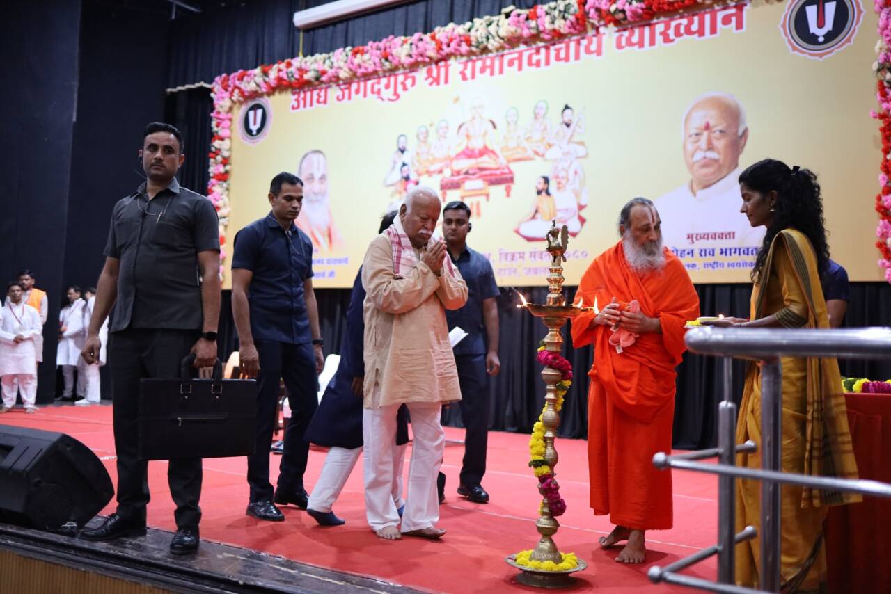 ആചാര്യന്മാരെ ഏതെങ്കിലും ജാതിയുടെ പേരില് ബന്ധിക്കരുത്. അവര് എല്ലാവരുടേതുമാണ്. മനുഷ്യരെ ജാതി തിരിച്ച് പരിഗണിക്കുന്ന സാഹചര്യങ്ങള് ഒഴിവാകണം. രാഷ്ട്രത്തിന്റെ മുന്നേറ്റത്തിന് സാമാജിക ഏകതയുടെയും സമരസതയുടെയും കാലം അനിവാര്യമാണ്. രാഷ്ട്രത്തെ നിന്ദിക്കുകയും സമാജിക ഐക്യം തകര്ക്കാന് ശ്രമിക്കുകയും ചെയ്യുന്നവരെ കരുതിയിരിക്കണം, സര്സംഘചാലക് പറഞ്ഞു.