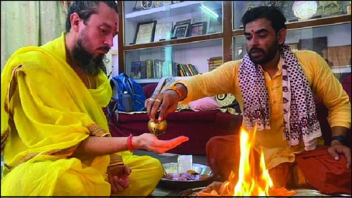 റഷ്യന്‍ മനഃശാസ്ത്രജ്ഞന്‍ ആന്റണ്‍ ആന്‍ഡ്രീവ് വാരാണസി വാഗ് യോഗ ചേതനാപീഠത്തില്‍ തന്ത്രദീക്ഷ സ്വീകരിക്കുന്ന ചടങ്ങ്‌