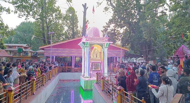 ജമ്മു: ഉത്സവാഘോഷങ്ങളില് നിറഞ്ഞ് കശ്മീരിലെ ഖീര്ഭവാനി മന്ദിര്. ഖീര് ഭവാനി ക്ഷേത്രം എന്നറിയപ്പെടുന്ന മാതാ രാഗ്നേയ ദേവി ക്ഷേത്രത്തിലേക്ക് താഴ് വരയില് നിന്നടക്കം വലിയ ഭക്തജനത്തിരക്കാണ്. 26 ന് ആരംഭിച്ച ഖീര് ഭവാനി മേളയിലേക്ക് ഭക്തര്ക്ക് എത്തിച്ചേരാന് കശ്മീര് ഭരണകൂടം വിപുലമായ ഒരുക്കങ്ങളാണ് നടത്തിയത്.