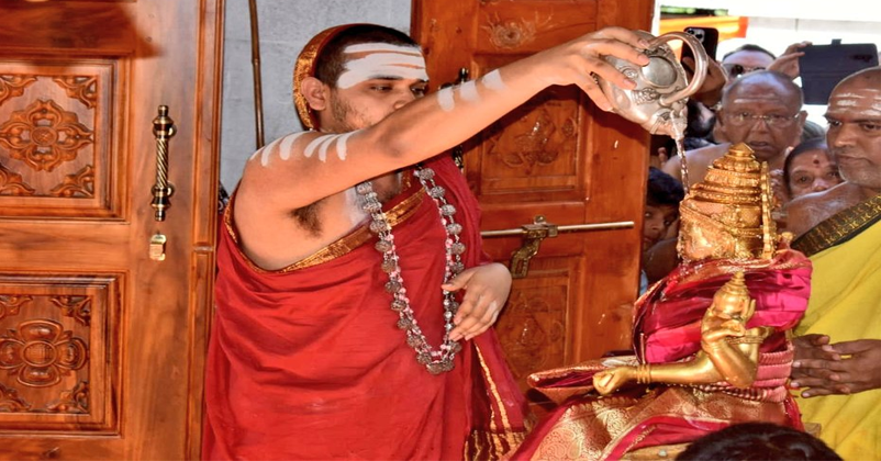 പതിറ്റാണ്ടുകള്ക്ക് ശേഷമാണ് ശ്രീശാരദാപീഠത്തില് അഭിഷേകച്ചടങ്ങുകള് നടക്കുന്നത്. ഞായറാഴ്ച ഹെലികോപ്റ്ററില് തങ്ധര് ഹെലിപാഡിലെത്തിയ ശൃംഗേരി ശങ്കരാചാര്യര് അവിടെ നിന്നാണ് തിത്വാള് ക്ഷേത്രത്തിലെത്തിയത്. കുപ്വാരയിലെ ഡെപ്യൂട്ടി കമ്മിഷണറും എസ്എസ്പിയും മറ്റ് ഉദ്യോഗസ്ഥരോടൊപ്പം ശങ്കരാചാര്യരെ സ്വീകരിച്ചു.
