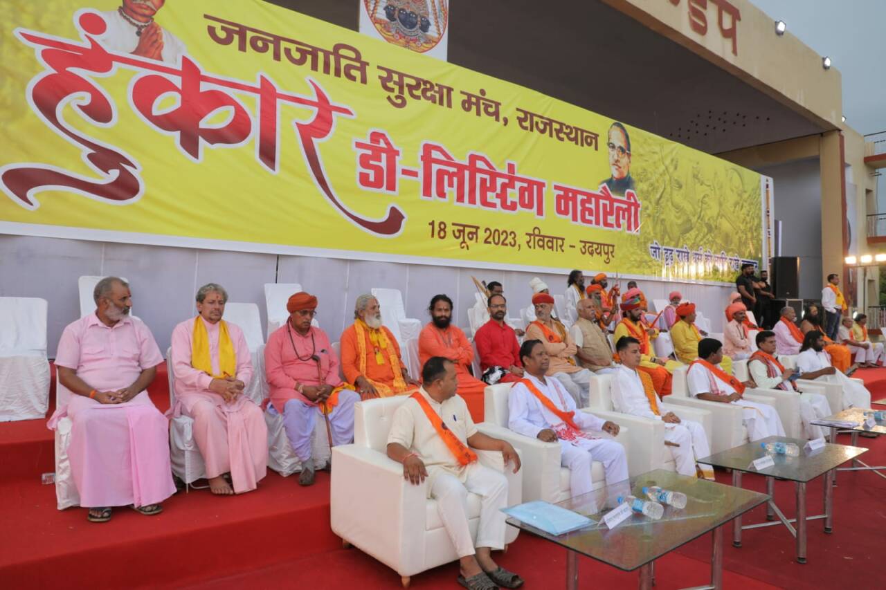 പൂര്വികരുടെ വിശ്വാസം, സംസ്കാരം, പാരമ്പര്യം, ഭാഷ, പെരുമാറ്റം എന്നിവ ഉപേക്ഷിച്ച് അന്യമതത്തിലേക്ക് പോകുന്നവര് ഗോത്രമെന്ന നിലയില് നല്കിയ അവകാശങ്ങളും ഉപേക്ഷിക്കണമെന്ന് അദ്ദേഹം ആവശ്യപ്പെട്ടു. ബെനേശ്വര് ധാം മഠാധിപതി മഹന്ത് അച്യുതാനന്ദ്, ഗോത്ര വര്ഗ ആചാര്യന് സ്വാമി ഗുലാബ്ദാസ്, സുരതാധാമിലെ മഹന്ത് രത്തന് ഗിരി, ലസുദിയ ധാമിലെ മഹന്ത് വിക്രം ഗിരി ജനജാതി സുരക്ഷാമഞ്ച് ദേശീയ സഹ സംയോജകന് രാജ്കുമാര് ഹന്സ്ദ, സംസ്ഥാന സംയോജകന് ലാലുറാം കത്താറ, ജസ്റ്റിസ് പ്രകാശ് യു.കെ.എന്നിവരും പരിപാടിയില് പങ്കെടുത്തു.