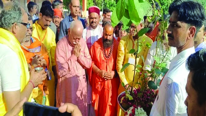 വാരാണസിയില് നാളെ ചേരുന്ന ക്ഷേത്രസമിതികളുടെ അന്താരാഷ്ട്ര സമ്മേളനത്തില് പങ്കെടുക്കുന്നതിന് മുന്നോടിയായാണ് സര്സംഘചാലക് മോഹന്ഭാഗവത് ഹാത്തിയാറാം സിദ്ധപീഠത്തിലെത്തിയത്. മഠാധിപതി മഹാമണ്ഡലേശ്വര് ഭവാനി നന്ദന്യതി സര്സംഘചാലകിന് പൂക്കള് നല്കി സ്വീകരിച്ചു. സംന്യാസിശ്രേഷ്ഠരുമായി അദ്ദേഹം കൂടിക്കാഴ്ച നടത്തി. മഠത്തിലെ ചാതുര്മാസ ചടങ്ങുകളില് അദ്ദേഹം പങ്കെടുത്തു.