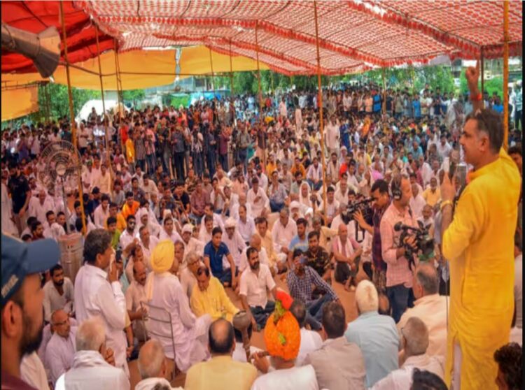 ഗുരുഗ്രാം(ഹരിയാന): ശ്രാവണപൂജാ ശോഭായാത്രയ്‌ക്കെതിരെ നൂഹില്‍ നടന്ന അക്രമങ്ങളുടെ പശ്ചാത്തലത്തില്‍ സമാധാനത്തിന് ആഹ്വാനം ചെയ്ത് ഗുരുഗ്രാമില്‍ ഹിന്ദുസംഘടനകള്‍ മഹാപഞ്ചായത്ത് ചേര്‍ന്നു. ഗുരുഗ്രാമിലെ തിഗര്‍ ഗ്രാമത്തില്‍ ചേര്‍ന്ന മഹാപഞ്ചായത്തില്‍ ഇരുനൂറ് ഗ്രാമങ്ങളില്‍നിന്ന് എംഎല്‍എമാരും കൗണ്‍സിലര്‍മാരും സര്‍പഞ്ചുമാരുമടക്കം 700 പ്രതിനിധികള്‍ പങ്കെടുത്തു.