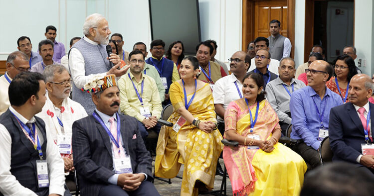 ന്യൂദല്ഹി: അധ്യാപക ദിനത്തിന്റെ പൂര്വസന്ധ്യയില് 2023 ലെ ദേശീയ അധ്യാപക പുരസ്കാര ജേതാക്കളുമായി പ്രധാനമന്ത്രി നരേന്ദ്ര മോദി ആശയവിനിമയം നടത്തി. കൂടിക്കാഴ്ചയില് 75 പുരസ്കാര ജേതാക്കള് പങ്കെടുത്തു.