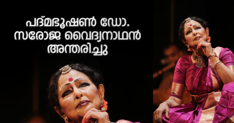 1937ല് കര്ണാടകയിലെ ബെല്ലാരിയിലാണ് ജനനം. 2002ല് പദ്മശ്രീ, 2013ല് പദ്മഭൂഷണ് ബഹുമതി നല്കി രാജ്യം ആദരിച്ചിട്ടുണ്ട്. കേന്ദ്ര സംഗീത നാടക അക്കാദമി അവാര്ഡ്, ദല്ഹി സര്ക്കാരിന്റെ സാഹിത്യ കലാ പരിഷത്ത് പുരസ്കാരം. ഭരതനാട്യത്തിലും കര്ണാടിക് സംഗീതത്തിലും അതുല്യസംഭാവനകള് നല്കിയ അവര് രണ്ടായിരത്തിലേറെ പരിപാടികള്ക്ക് നൃത്തസംവിധായകയുമായി. ദല്ഹിയില് അരനൂറ്റാണ്ട് പിന്നിട്ട ഗണേശ നാട്യാലയത്തിന്റെ സ്ഥാപകയും ഗുരുവുമാണ് സരോജ വൈദ്യനാഥന്. ലോകമെമ്പാടും ശിഷ്യസമ്പത്ത് കൊണ്ട് വിഖ്യാതയാണ് അവര്. 2021 മുതല് സംസ്കാര് ഭാരതി ദല്ഹി ഘടകം അദ്ധ്യക്ഷയാണ്. സംസ്കാരം നാളെ ഉച്ചയ്ക്ക് രണ്ടിന് ലോധി ശ്മശാനത്തില് നടക്കും.