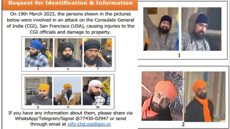 ന്യൂഡൽഹി: യുഎസിലെ ഇന്ത്യൻ കോൺസുലേറ്റിൽ ആക്രമണം നടത്തിയ പത്ത് ഖാലിസ്ഥാൻ ഭീകരവാദികളുടെ ഫോട്ടോ എൻഐഎ പുറത്തുവിട്ടു. 2023 മാർച്ചിലാണ് സാൻഫ്രാൻസിസ്കോയിലുള്ള കോൺസുലേറ്റിന് നേരെ ആക്രമണം ഉണ്ടായത്. പ്രതികളുടെ ഫോട്ടോ ഉൾപ്പെടുത്തിക്കൊണ്ടുള്ള നോട്ടീസാണ് ദേശീയ അന്വേഷണ ഏജൻസി പുറത്തിറക്കിയത്.