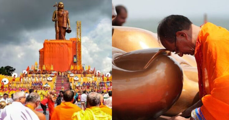 ‘ആദി ഗുരു ശങ്കരാചാര്യ രാജ്യത്തെ സാംസ്കാരികമായി ബന്ധിപ്പിക്കാൻ പ്രവർത്തിച്ചു. വേദങ്ങളുടെ സാരാംശം സാധാരണക്കാരിലേക്ക് എത്തിക്കാൻ അദ്ദേഹം പ്രവർത്തിച്ചു. രാജ്യത്തിന്റെ നാല് ആശ്രമങ്ങളും അദ്ദേഹം പണിതു. ഇന്ത്യയെ സാംസ്കാരികമായി ഏകീകൃതമായി നിലനിർത്താൻ ഇത് പ്രവർത്തിച്ചു. അതുകൊണ്ടാണ് ഇന്ത്യ ഇന്ന് ഒന്നിച്ചിരിക്കുന്നത്. കേരളത്തിൽ ജനിച്ച ആദിശങ്കരാചാര്യർ തന്റെ അറിവ് നേടിയത് ഓംകാരേശ്വരിലാണ്. അറിവിന്റെ പാരമ്പര്യം അവിടെ നിന്ന് അവസാനിക്കരുത്, വരും തലമുറകളും അറിവ് നേടുന്നത് തുടരണം. അതിനാൽ, അവിടെ ദൈവിക പ്രതിമ സ്ഥാപിക്കുക മാത്രമല്ല, ഞങ്ങൾ അവിടെ ഏകാത്മാ ധാം നിർമ്മിക്കാനും പോകുന്നു.’- മുഖ്യമന്ത്രി സിംഗ് ചൗഹാൻ വ്യക്തമാക്കി.