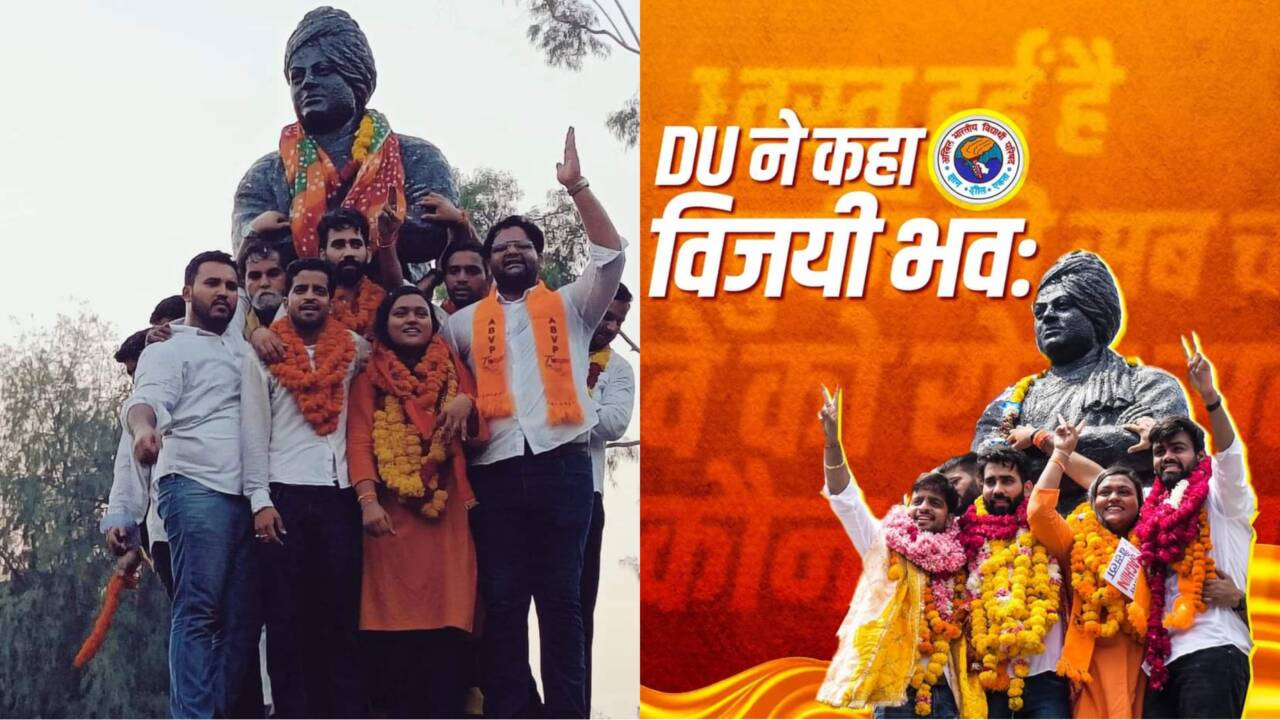 ന്യൂഡൽഹി: മൂന്ന് വർഷത്തെ ഇടവേളയ്ക്ക് ശേഷം നടന്ന ഡൽഹി സർവകലാശാല തിരഞ്ഞെടുപ്പിൽ വിജയത്തേരോട്ടവുമായി എബിവിപി. നാല് പാനലുകളിൽ മൂന്നിലും വിജയം സ്വന്തമാക്കിയ എബിവിപി സ്ഥാനാർത്ഥികൾ സർവകലാശാലയിൽ വീണ്ടും ഭരണമുറപ്പിച്ചു. പ്രസിഡന്റ്, വൈസ് പ്രസിഡന്റ്, സെക്രട്ടറി, ജോയിന്റ് സെക്രട്ടറി എന്നീ പാനലുകളിലേക്കായിരുന്നു മത്സരം. ആകെ 24 സ്ഥാനാർത്ഥികളായിരുന്നു നാല് പാനലുകളിലേക്കായി മത്സരിച്ചത്.