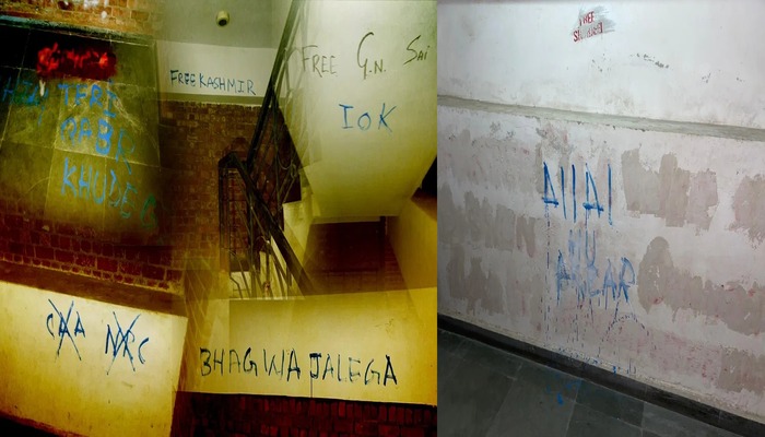ജെഎന്യു കാമ്പസിനെ സംബന്ധിച്ചിടത്തോളം ഇത്തരം വിവാദ മുദ്രാവാക്യങ്ങള് ചുമരിലെഴുതുന്നത് പുത്തരിയല്ല. 2022ല് ബ്രാഹ്മണ വിരുദ്ധ ചുമരെഴുത്തുകള് ധാരാളമായി പ്രത്യക്ഷപ്പെട്ടിരുന്നു. ബ്രാഹ്മണര് കാമ്പസ് വിടുന്നു, ശാഖകളിലേക്ക് മടങ്ങിപ്പോകൂ തുടങ്ങിയ മുദ്രാവാക്യങ്ങളാണ് എഴുതപ്പെട്ടിരുന്നത്. ജെഎന്യുവിനെ ബാധിച്ച പ്രകോപനപരമായ പ്രവര്ത്തനങ്ങളുടെ സ്വഭാവമാണ് ഈ സംഭവങ്ങള് അടിവരയിട്ട് പറയുന്നത്. കാമ്പസിനകത്ത് അക്കാദമിക മൂല്യങ്ങളുടെയും അന്തസ്സിന്റെയും ചോര്ന്നുപോകുന്നത് ആശങ്ക ഉളവാക്കുന്ന ഒന്നാണ്.