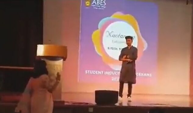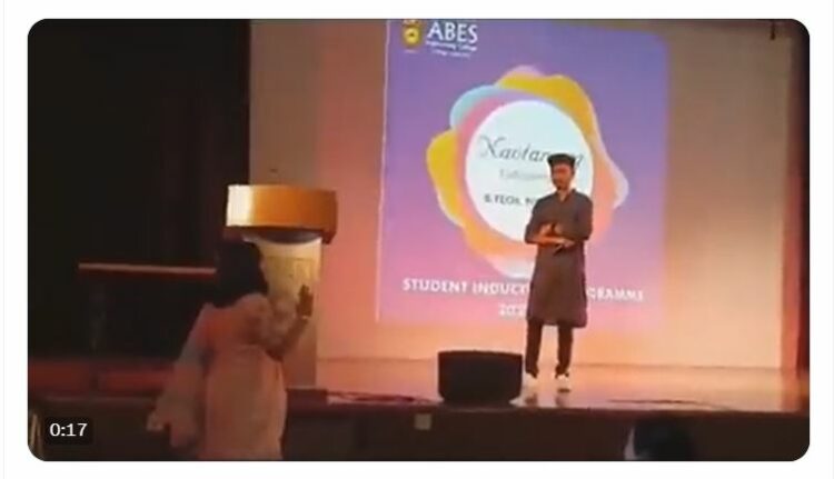 ലക്നൗ: ഉത്തർപ്രദേശിൽ ജയ് ശ്രീറാം വിളിച്ച വിദ്യാർത്ഥിയെ വേദിയിൽ നിന്നും ഇറക്കിവിട്ട് അദ്ധ്യാപിക. ഗാസിയാബാദിലെ എബിഇഎസ് എഞ്ചിനീയറിംഗ് കോളേജിൽ നടന്ന സാംസ്കാരിക മേളയിൽ പാട്ട് പാടാനായി എത്തിയ ഒന്നാം വർഷ ബിടെക് വിദ്യാർത്ഥിയെയാണ് ഇറക്കി വിട്ടത്. ഇതിന്റെ ദൃശ്യങ്ങൾ സമൂഹമാദ്ധ്യമങ്ങളിൽ വ്യാപകമായി പ്രചരിക്കുന്നുണ്ട്.