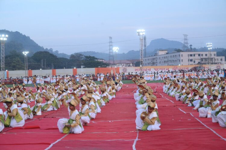 ഡോ. ഭീംറാവു റാംജി അംബേദ്കറുടെ സ്മൃതിവാര്‍ഷികത്തോട് അനുബന്ധിച്ചായിരുന്നു പരിപാടി. ആര്‍എസ്എസ് നേതൃത്വത്തിലുള്ള ഡോ. ഹെഡ്‌ഗേവാര്‍ സ്മാരക സമിതിയായിരുന്നു സംഘാടകര്‍. ഗുവാഹത്തിയിലെ ഖാനപ്പാറ വെറ്ററിനറി കോളജ് ഗ്രൗണ്ടില്‍ പരമ്പരാഗത വസ്ത്രങ്ങള്‍ അണിഞ്ഞാണ് ‘സമത്വത്തിന്റെ താളമാണ് ജീവിതത്തിന്റെ സന്തോഷം’ എന്ന് ഉദ്‌ഘോഷിച്ച് സംഘടിപ്പിച്ച പരിപാടിയിലേക്ക് ആയിരങ്ങള്‍ ഒഴുകിയെത്തിയത്. സ്ത്രീകളടക്കമുള്ള തൊഴിലാളികള്‍ പരിപാടിക്ക് ആവേശം പകര്‍ന്നു.