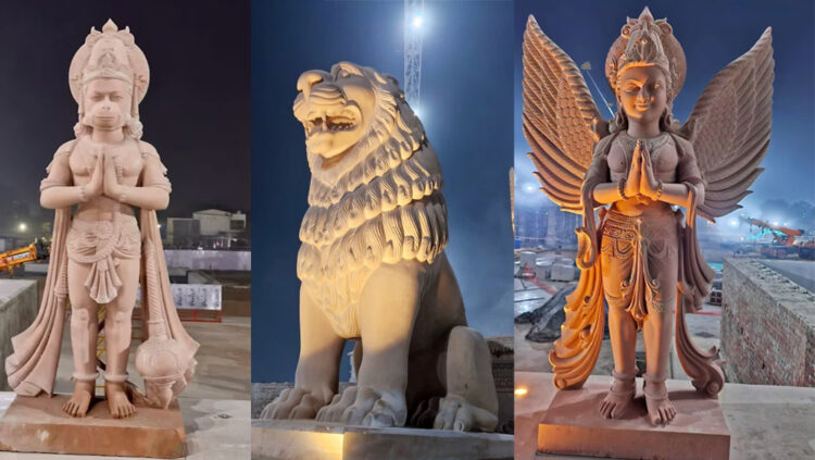 പ്രധാന കവാടത്തിൽ ഹനുമാൻ, ഗരുഡൻ, ആനകൾ, സിംഹങ്ങൾ എന്നിവയുടെ പ്രതിമകൾ സ്ഥാപിക്കും. കവാടത്തിൽ സ്ഥാപിക്കാനൊരുങ്ങുന്ന പ്രതിമകളുടെ ചിത്രങ്ങൾ പങ്കുവെച്ചിരിക്കുകയാണ് രാമജന്മഭൂമി ക്ഷേത്ര ട്രസ്റ്റ്. രാജസ്ഥാനിലെ പഹാർപൂർ പ്രദേശത്ത് നിന്നുള്ള മണൽക്കല്ലുകൾ ഉപയോഗിച്ചാണ് പ്രതിമകൾ നിർമ്മിച്ചിരിക്കുന്നത്.