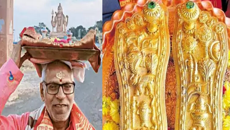 ലക്നൗ: തലയിൽ ഒരു ജോടി സ്വർണ പാദുകങ്ങളുമായി അയോദ്ധ്യയിലേയ്ക്ക് യാത്ര പുറപ്പെട്ട് ഹൈദരാബാദ് സ്വദേശി. ചർള ശ്രീനിവാസ ശാസ്ത്രി എന്ന വ്യക്തിയാണ് ശ്രീരാമ ഭഗവാനെ ഭജിച്ചുകൊണ്ട് രാമക്ഷേത്രത്തിലെ പ്രാണപ്രതിഷ്ഠാ ചടങ്ങ് നടക്കുന്ന വേളയിൽ അയോദ്ധ്യയിലേയ്ക്ക് യാത്ര തിരിച്ചിരിക്കുന്നത്. 1,300 കിലോമീറ്ററാണ് കാൽ നടയായി ഈ മദ്ധ്യവയസ്കൻ താണ്ടുന്നത്.