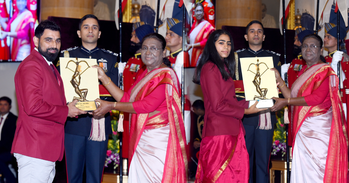 ക്രിക്കറ്റ് താരം മുഹമ്മദ് ഷമി, ചെസ് താരം ആര് വൈശാലി, അമ്പെയ്ത്ത് താരങ്ങളായ ഓജസ് പ്രവീണ് ഡിയോട്ടലെ, അദിതി ഗോപിചന്ദ് സ്വാമി, ഗോള്ഫ് താരം ദിക്ഷാ ദാഗര്, കബഡി താരങ്ങളായ പവന് കുമാര്, റിതു നേഗി എന്നിവര്ക്ക് അര്ജുന അവാര്ഡ് ലഭിച്ചു.
