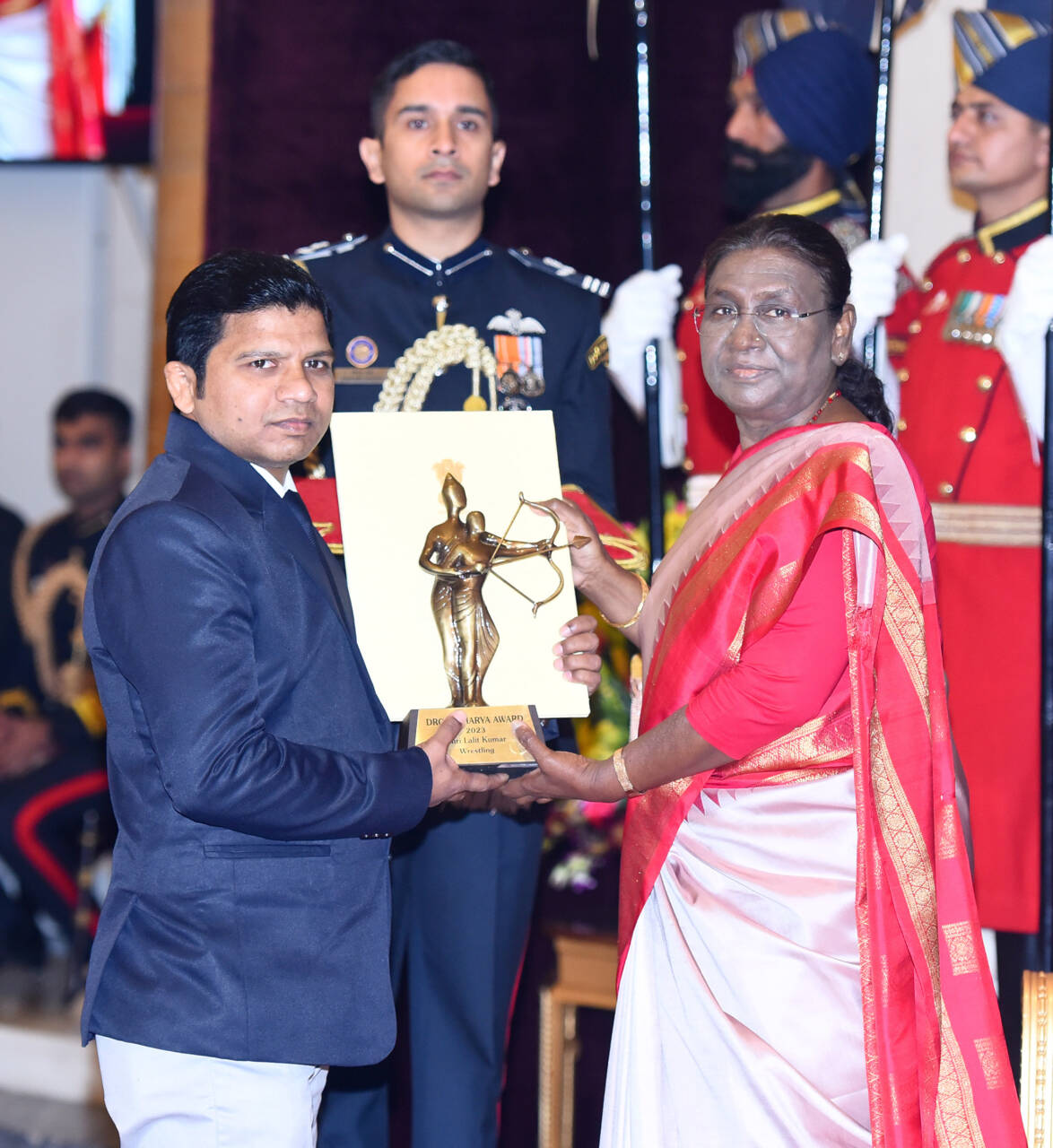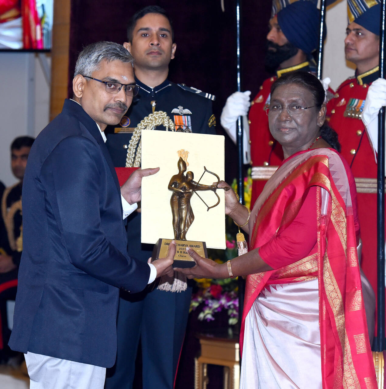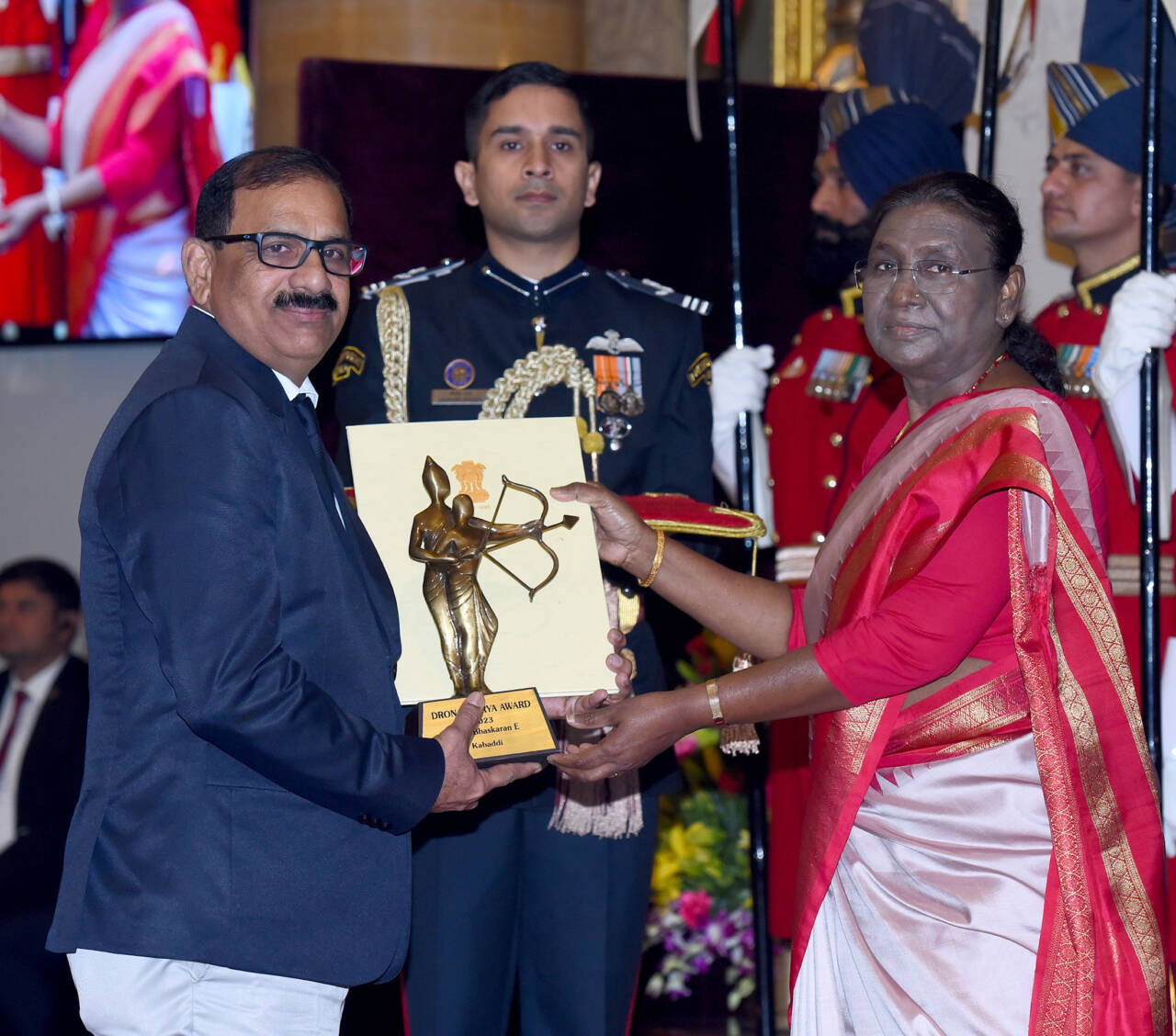The President of India, Smt Droupadi Murmu presenting the Dronacharya Award (Lifetime) 2023 to Shri Jayanta Kumar Pushilal for Table Tennis in a glittering ceremony, at Rashtrapati Bhavan, in New DelhiThe President of India, Smt Droupadi Murmu presenting the Dronacharya Award (Lifetime) 2023 to Captain Bhaskaran E for Kabaddi in a glittering ceremony, at Rashtrapati Bhavan, in New DelhiThe President of India, Smt Droupadi Murmu presenting the Dronacharya Award (Lifetime) 2023 to Shri Jaskirat Singh Grewal for Golf in a glittering ceremony, at Rashtrapati Bhavan, in New DelhiThe President of India, Smt Droupadi Murmu presenting the Dronacharya Award 2023 to Shri Ganesh Prabhakar Devrukhkar for Mallakhamb in a glittering ceremony, at Rashtrapati Bhavan, in New DelhiThe President of India, Smt Droupadi Murmu presenting the Dronacharya Award 2023 to Shri Shivendra Singh for Hockey in a glittering ceremony, at Rashtrapati Bhavan, in New DelhiThe President of India, Smt Droupadi Murmu presenting the Dronacharya Award 2023 to Shri Mahaveer Prasad Saini for Para Athletics in a glittering ceremony, at Rashtrapati Bhavan, in New DelhiThe President of India, Smt Droupadi Murmu presenting the Dronacharya Award 2023 to Shri R B Ramesh for Chess in a glittering ceremony, at Rashtrapati Bhavan, in New DelhiThe President of India, Smt Droupadi Murmu presenting the Dronacharya Award 2023 to Shri Lalit Kumar for Wrestling in a glittering ceremony, at Rashtrapati Bhavan, in New Delhi