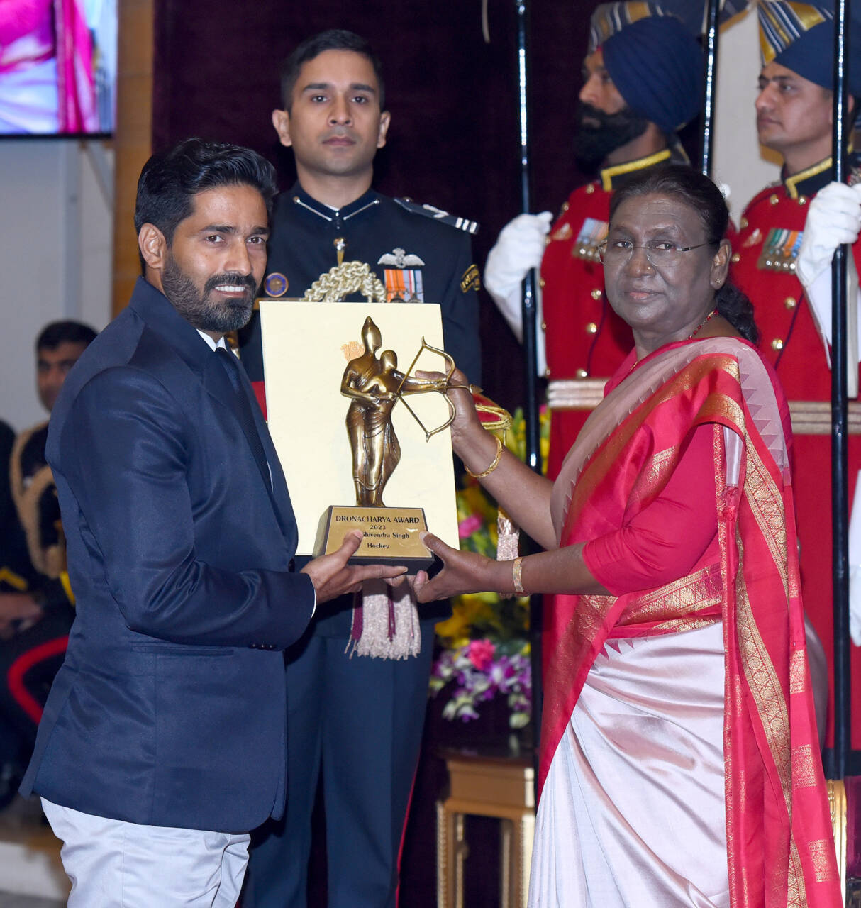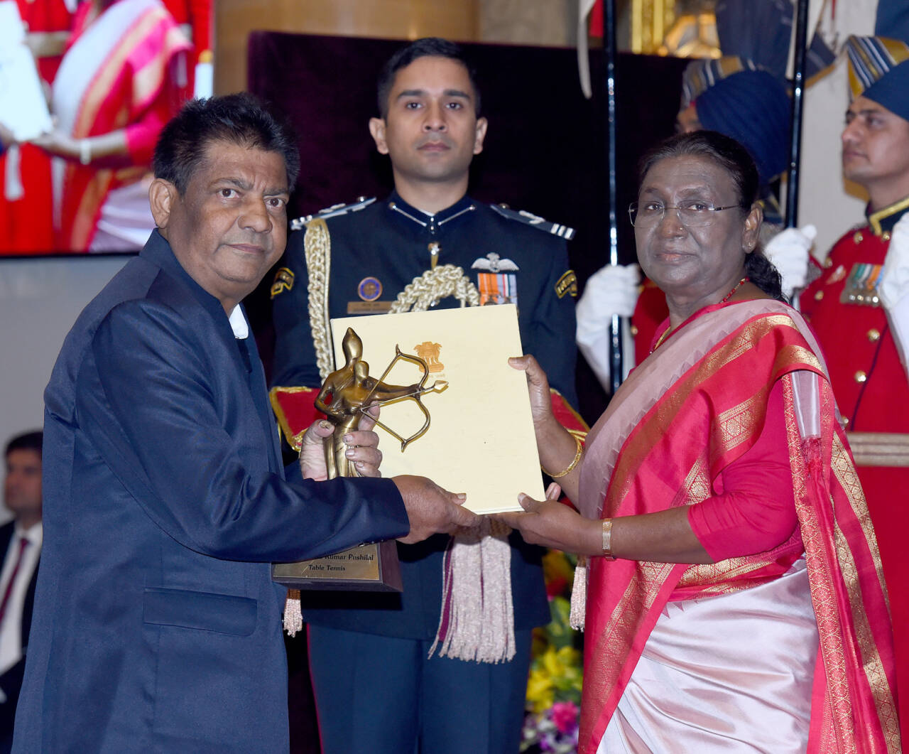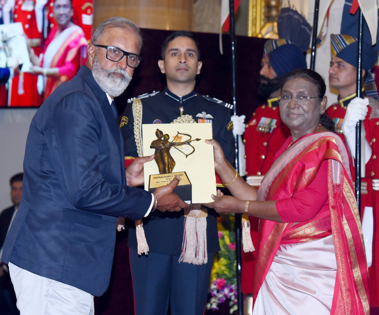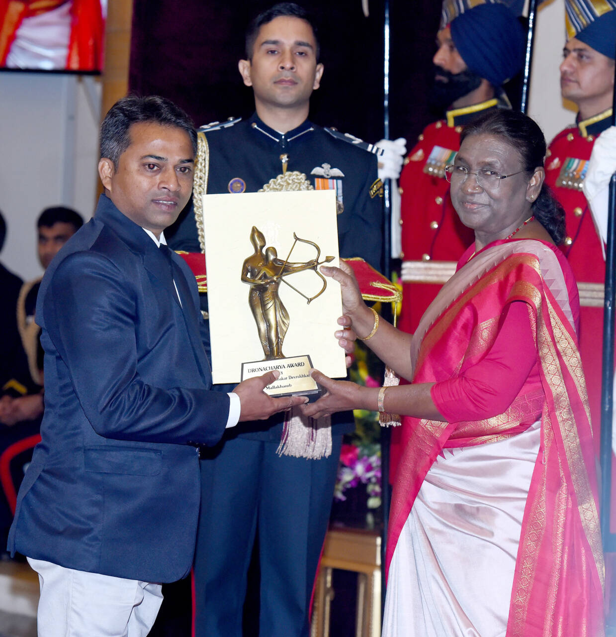 The President of India, Smt Droupadi Murmu presenting the Dronacharya Award (Lifetime) 2023 to Shri Jayanta Kumar Pushilal for Table Tennis in a glittering ceremony, at Rashtrapati Bhavan, in New DelhiThe President of India, Smt Droupadi Murmu presenting the Dronacharya Award (Lifetime) 2023 to Captain Bhaskaran E for Kabaddi in a glittering ceremony, at Rashtrapati Bhavan, in New DelhiThe President of India, Smt Droupadi Murmu presenting the Dronacharya Award (Lifetime) 2023 to Shri Jaskirat Singh Grewal for Golf in a glittering ceremony, at Rashtrapati Bhavan, in New DelhiThe President of India, Smt Droupadi Murmu presenting the Dronacharya Award 2023 to Shri Ganesh Prabhakar Devrukhkar for Mallakhamb in a glittering ceremony, at Rashtrapati Bhavan, in New DelhiThe President of India, Smt Droupadi Murmu presenting the Dronacharya Award 2023 to Shri Shivendra Singh for Hockey in a glittering ceremony, at Rashtrapati Bhavan, in New DelhiThe President of India, Smt Droupadi Murmu presenting the Dronacharya Award 2023 to Shri Mahaveer Prasad Saini for Para Athletics in a glittering ceremony, at Rashtrapati Bhavan, in New DelhiThe President of India, Smt Droupadi Murmu presenting the Dronacharya Award 2023 to Shri R B Ramesh for Chess in a glittering ceremony, at Rashtrapati Bhavan, in New DelhiThe President of India, Smt Droupadi Murmu presenting the Dronacharya Award 2023 to Shri Lalit Kumar for Wrestling in a glittering ceremony, at Rashtrapati Bhavan, in New Delhi