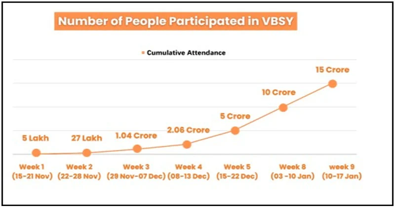 ജനുവരി 17ലെ കണക്കനുസരിച്ച് 2.21 ലക്ഷം ഗ്രാമപഞ്ചായത്തുകളിലും 9,541 നഗരപ്രദേശങ്ങളിലുമായി 15.34 കോടി പേര്‍ പങ്കെടുത്തതായി ‘വികസിത് ഭാരത് സങ്കല്‍പ്പ് യാത്ര’ ഡാഷ്‌ബോര്‍ഡ് വ്യക്തമാക്കുന്നു.