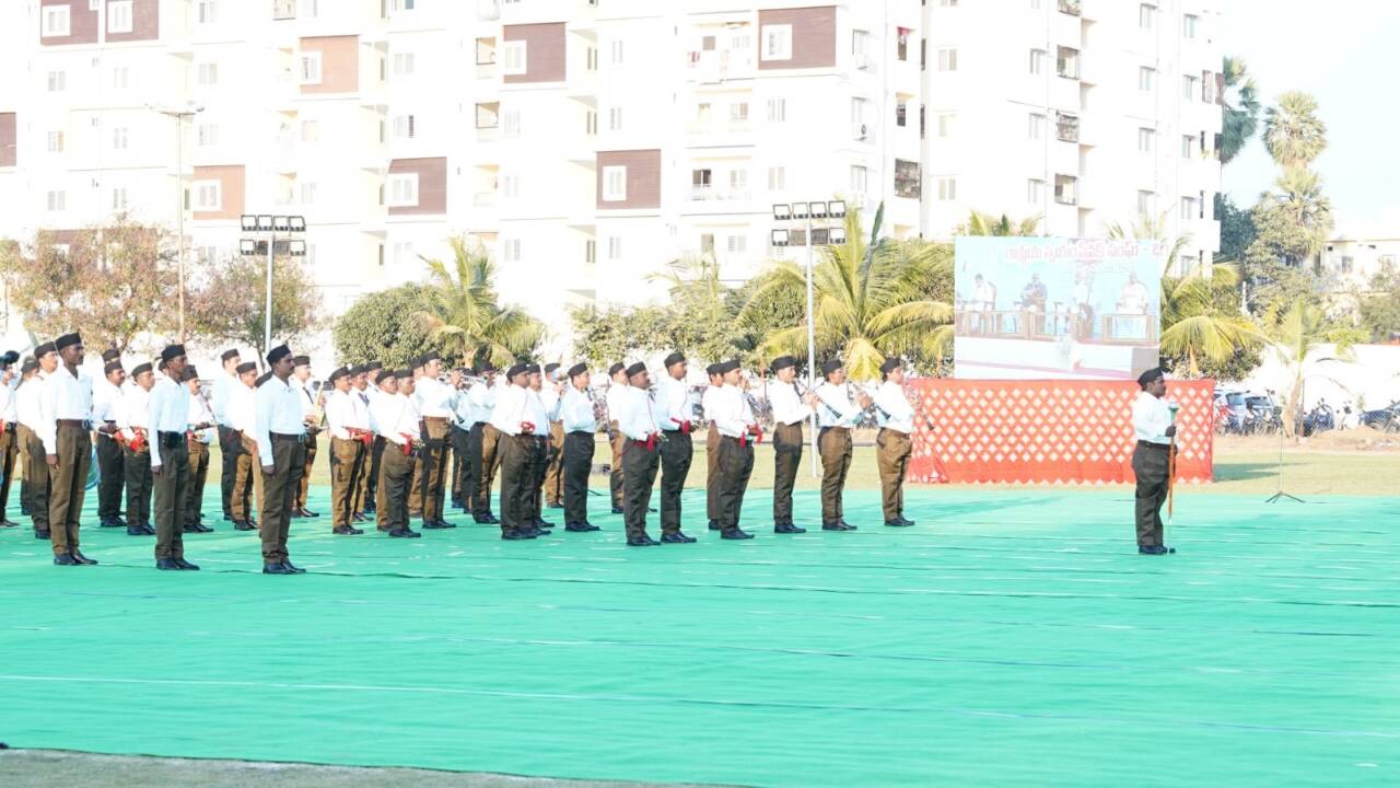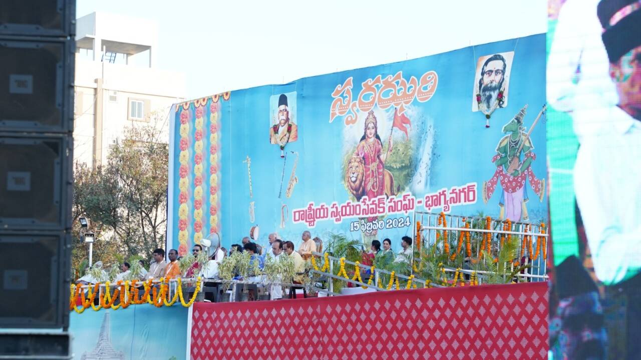 ഹൈദരാബാദ്: ഘട്കേസറില് ആര്എസ്എസ് ഘോഷ് വാദക സംഘം അവതരിപ്പിച്ച സ്വരഝരി വിസ്മയമായി. സര്സംഘചാലക് ഡോ. മോഹന് ഭാഗവതിന്റെയും ഓസ്കര് ജേതാവ് എം എം കീരവാണിയുടെയും സാന്നിധ്യത്തിലാണ് തെരഞ്ഞെടുത്ത എണ്പത്തൊന്ന് സ്വയംസേവകര് ശംഖും വംശിയും ആനകുമടക്കമുള്ള പരമ്പരാഗത ഘോഷ് വാദ്യോപകരണങ്ങളില് പുതിയ സംഗീതരചനകള് അവതരിപ്പിക്കുകയും അതിന് അനുസരിച്ച് സഞ്ചലനം നടത്തുകയും ചെയ്തത്. ശംഖ്, വേണു (സൈഡ് ഫ്ളൂട്ട്), ശൃംഗ (ബ്രാസ് ബാന്ഡ്), ആനക് (സൈഡ് ഡ്രം), പണവ (ബാസ് ഡ്രം), ഝല്ലരി, ത്രിഭുജ തുടങ്ങിയ ഉപകരണങ്ങള് ഉപയോഗിച്ച് ഭാരതീയ രാഗങ്ങളെ അടിസ്ഥാനമാക്കിയുള്ള രചനകള് സ്വയംസേവകര് വായിച്ചു.