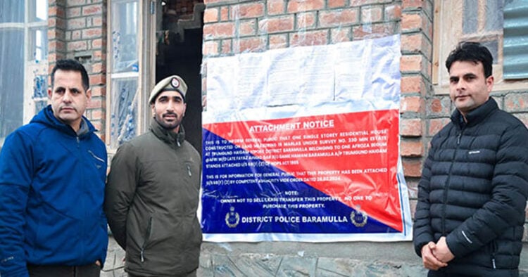 മയക്കുമരുന്ന് കച്ചവടക്കാര്ക്കെതിരായ നടപടി തുടരുന്നതിന്റെ ഭാഗമായാണ് ബാരാമുള്ളയിലെ പോലീസ്, കുപ്രസിദ്ധ മയക്കുമരുന്ന് കച്ചവടക്കാരായ അഫ്രോസ ബീഗത്തിന്റെ സ്വത്തുക്കള് (ഏകദേശം 15.00 ലക്ഷം രൂപ വിലമതിക്കുന്ന ഒറ്റനില പാര്പ്പിടം) കണ്ടുകെട്ടിയതെന്ന് പോലീസ് വ്യക്തമാക്കി.