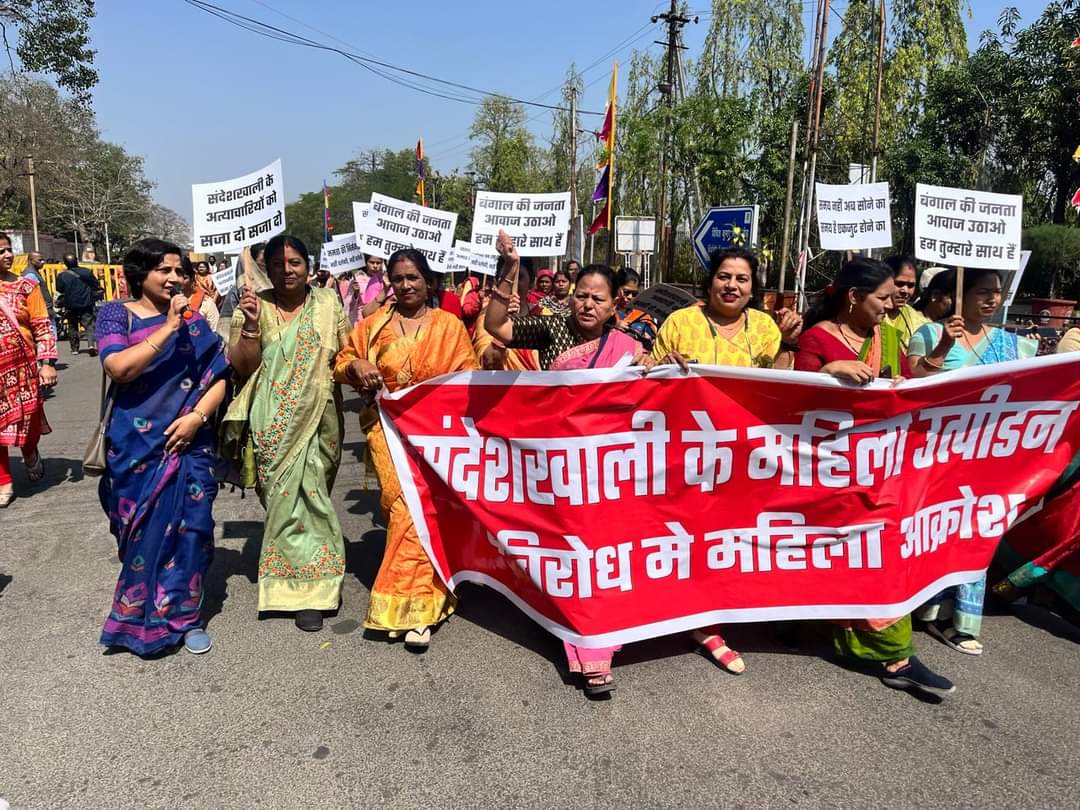 ഭോപാല്: സന്ദേശ്ഖാലി സംഭവങ്ങളില് പ്രതിഷേധിച്ച് മധ്യപ്രദേശിലെ എല്ലാ ജില്ലാകേന്ദ്രങ്ങളിലും മാതൃശക്തി പ്രവര്ത്തകര് പ്രകടനം നടത്തി. രാക്ഷസീയമായ നടപടികള്ക്കാണ് സന്ദേശ് ഖാലി സാക്ഷ്യം വഹിക്കുന്നതെന്ന് പദ്മശ്രീ ദുര്ഗാഭായി പറഞ്ഞു. ഭോപാലില് പ്രതിഷേധസമ്മേളനത്തില് സംസാരിക്കുകയായിരുന്നു ദുര്ഗാഭായി. റോഷന്പുരയിലും ആയിരങ്ങള് പങ്കെടുത്ത പ്രതിഷേധമാണ് നടന്നത്.
