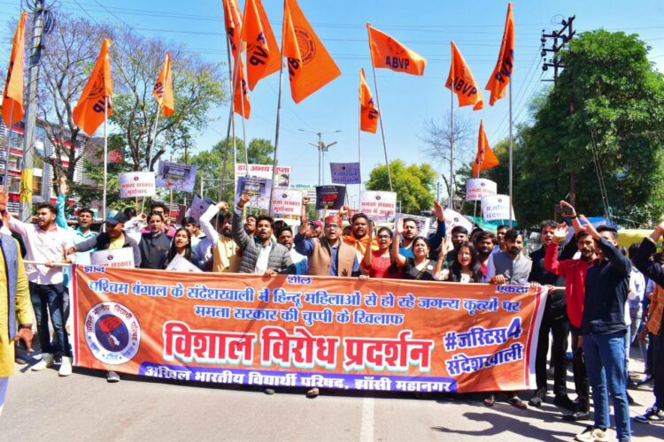 ന്യൂദല്ഹി: ബംഗാളിലെ സന്ദേശ്ഖാലിയില് അതിക്രമത്തിന് ഇരകളായ സ്ത്രീകള്ക്ക് നീതി ലഭ്യമാക്കണമെന്നാവശ്യപ്പെട്ട് എബിവിപിയുടെ നേതൃത്വത്തില് രാജ്യവ്യാപക പ്രക്ഷോഭം. കര്ശന അന്വേഷണം നടത്തി അക്രമികളെ എത്രയും വേഗം നിയമത്തിനു മുന്നില് കൊണ്ടുവരണമെന്നാവശ്യപ്പെട്ടായിരുന്നു പ്രക്ഷോഭം.