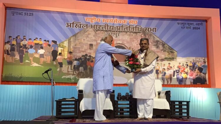 നാഗ്പൂര്‍: ആര്‍എസ്എസ് സര്‍കാര്യവാഹായി ദത്താത്രേയ ഹൊസബാളെയെ വീണ്ടും തെരഞ്ഞെടുത്തു. 2021 മുതല്‍ സര്‍കാര്യവാഹാണ് അദ്ദേഹം. രേശിംഭാഗ് സ്മൃതിഭവനില്‍ ഇന്നലെ അവസാനിച്ച ആര്‍എസ്എസ് അഖില ഭാരതീയ പ്രതിനിധി സഭയാണ് 2024- 2027 വര്‍ഷത്തേക്കുള്ള സര്‍കാര്യവാഹായി ദത്താത്രേയ ഹൊസബാളെയെ തെരഞ്ഞെടുത്തത്.