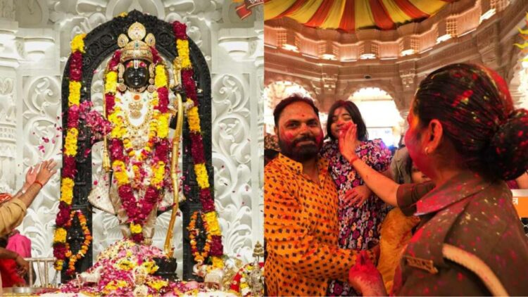 ഹോളി ആഘോഷങ്ങള്ക്ക് നിറം പകര്ന്ന രംഗോത്സവത്തിന്റെ ഭാഗമായി പനിനീര് പൂക്കള് കൊണ്ട് പൂജാരിമാര് രാംലല്ലയ്ക്ക് അഭിഷേകം നടത്തി. ജനങ്ങള്ക്കൊപ്പം ഭഗവാനും ഹോളിയില് പങ്കെടുക്കുന്ന സങ്കല്പത്തിലാണ് ഇന്നലെ ബാലകരാമനെ ഒരുക്കിയത്.