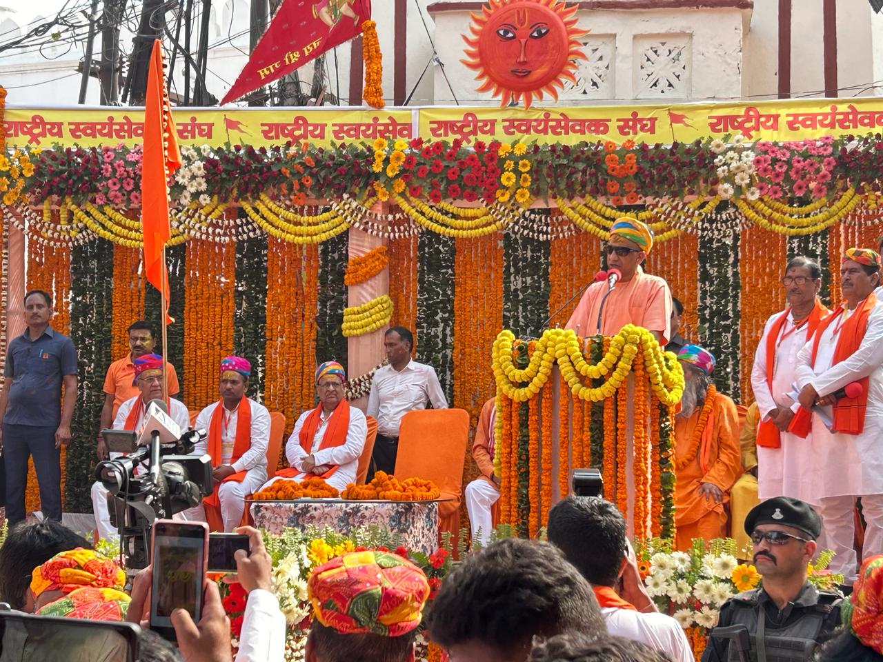 ഗോരഖ്പൂര്‍: നവോത്ഥാനത്തിന്റെയും സാമൂഹ്യപരിഷ്‌കരണത്തിന്റെയും ഉജ്ജ്വലമാതൃക തീര്‍ത്ത ഗോരഖ്പൂര്‍ ശ്രീനരസിംഹ ഹോളി ഘോഷയാത്രയില്‍ അണിനിരന്ന് പതിനായിരങ്ങള്‍. ബഹുവര്‍ണ തലപ്പാവണിഞ്ഞ്, പൂക്കള്‍ വര്‍ഷിച്ച് മുഖ്യമന്ത്രിയും ഗോരക്ഷാപീഠാധിപതിയുമായ യോഗി ആദിത്യനാഥ് ഘോഷയാത്ര ഉദ്ഘാടനം ചെയ്തു. ആര്‍എസ്എസ് പ്രചാരകന്‍ നാനാജി ദേശ്മുഖ് തുടക്കമിട്ട സാമാജികപരിവര്‍ത്തനമാണ് ചിട്ടയോടെ, ആഘോഷപൂര്‍വം നടക്കുന്ന ശ്രീനരസിംഹ ഹോളി ഘോഷയാത്രയെന്ന് യോഗി ആദിത്യനാഥ് പറഞ്ഞു.