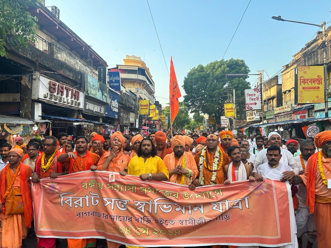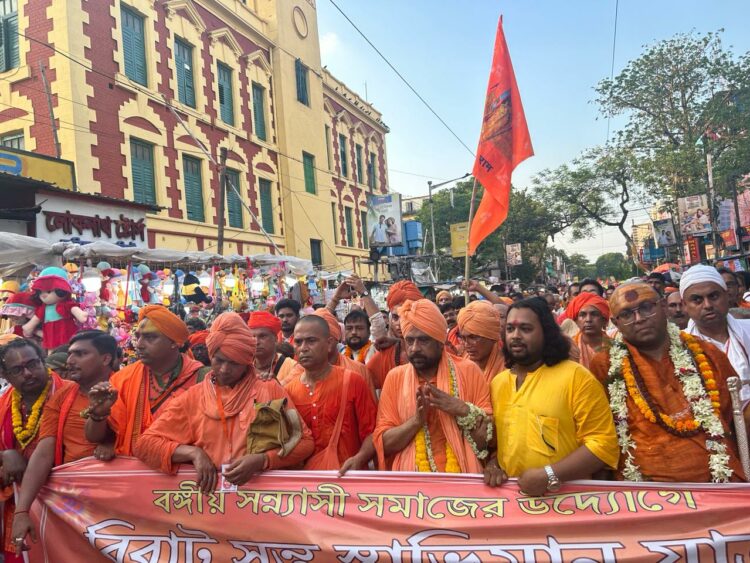 കൊല്‍ക്കത്ത: ബംഗാളിനെ ഇളക്കി മറിച്ച് സംന്യാസി പ്രക്ഷോഭം. സ്വാഭിമാനവും തനിമയും സംരക്ഷിക്കാന്‍ സംന്യാസിമാര്‍ സ്വാതന്ത്ര്യപ്രക്ഷോഭം നയിച്ച മണ്ണാണിതെന്ന് ബംഗാളിലെ ഹിന്ദുവിരുദ്ധ സര്‍ക്കാരിനെ ഓര്‍മിപ്പിച്ചുകൊണ്ടാണ് ആയിരക്കണക്കിന് സംന്യാസിമാര്‍ നഗ്നപാദരായി കൊല്‍ക്കത്തയില്‍ തെരുവ് നിറഞ്ഞത്. രാമകൃഷ്ണ മിഷന്‍, ഭാരത് സേവാശ്രമം സംഘ്, ഇസ്‌കോണ്‍ തുടങ്ങിയ ഹിന്ദുധര്‍മ്മസ്ഥാപനങ്ങള്‍ക്കെതിരെ ബംഗാള്‍ മുഖ്യമന്ത്രി മമതാ ബാനര്‍ജി നടത്തിയ ആക്ഷേപങ്ങളില്‍ പ്രതിഷേധിച്ചാണ് സംന്യാസിമാര്‍ തെരുവിലിറങ്ങിയത്.