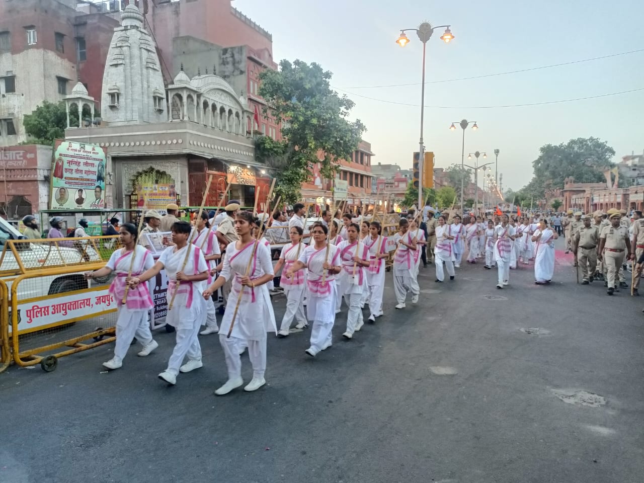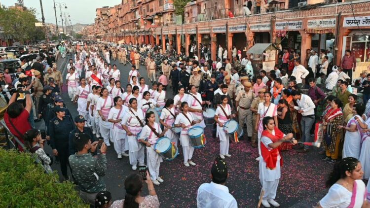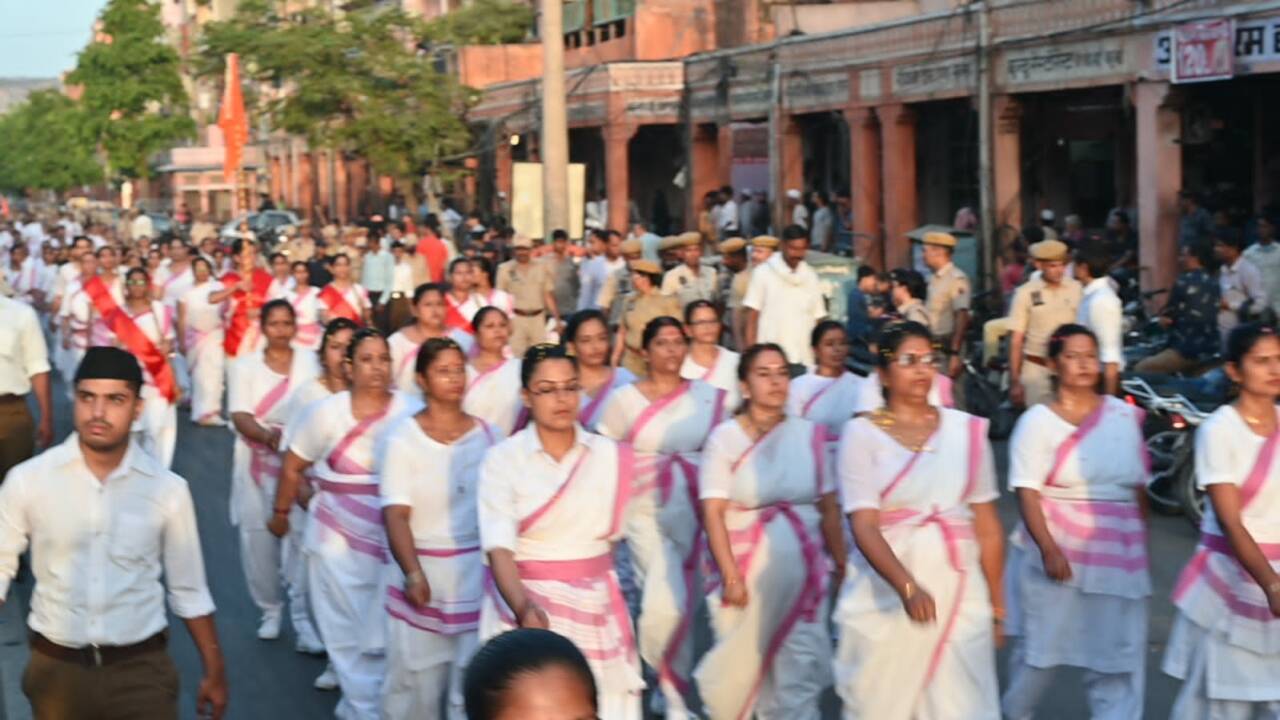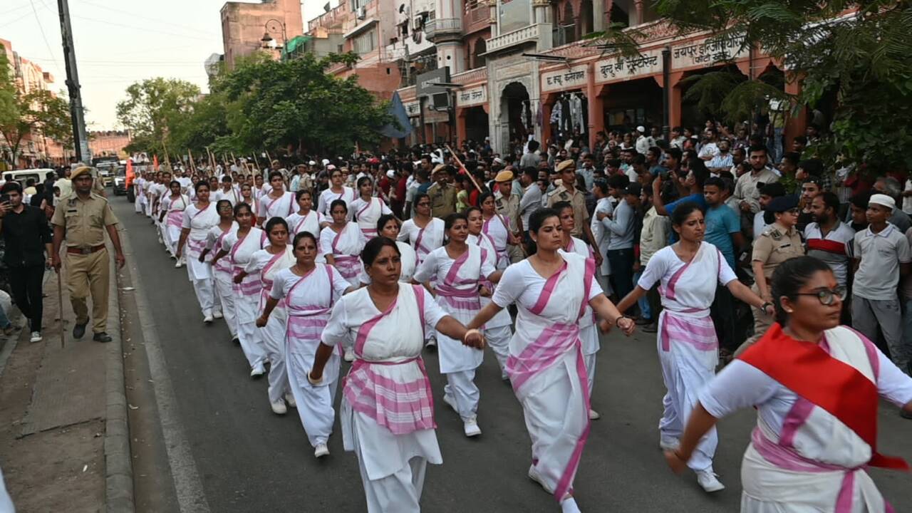 ‘സംഘടന് ഗഢേ ചലേ സുപന്ഥ് പര് ബഢേ ചോലോ എന്ന സഞ്ചലനഗീതവുമായി നൂറ് കണക്കിന് യുവതികള് പഥസഞ്ചലനത്തിന് പിന്നില് അണിനിരന്നു. അഗര്വാള് കോളജ്, ഘാട്ട്ഗേറ്റ്, രാംഗഞ്ച് ബസാര്, ബാഡി ചൗപര്, ജോഹ്രി ബസാര്, സംഗനേരി കവാടം വഴി അഗര്വാള് കോളജ് മൈതാനത്ത് സമാപിച്ച പഥസഞ്ചലനത്തിന് പാതയോരങ്ങളില് ഊഷ്മളമായ സ്വീകരണങ്ങള് ലഭിച്ചു.
