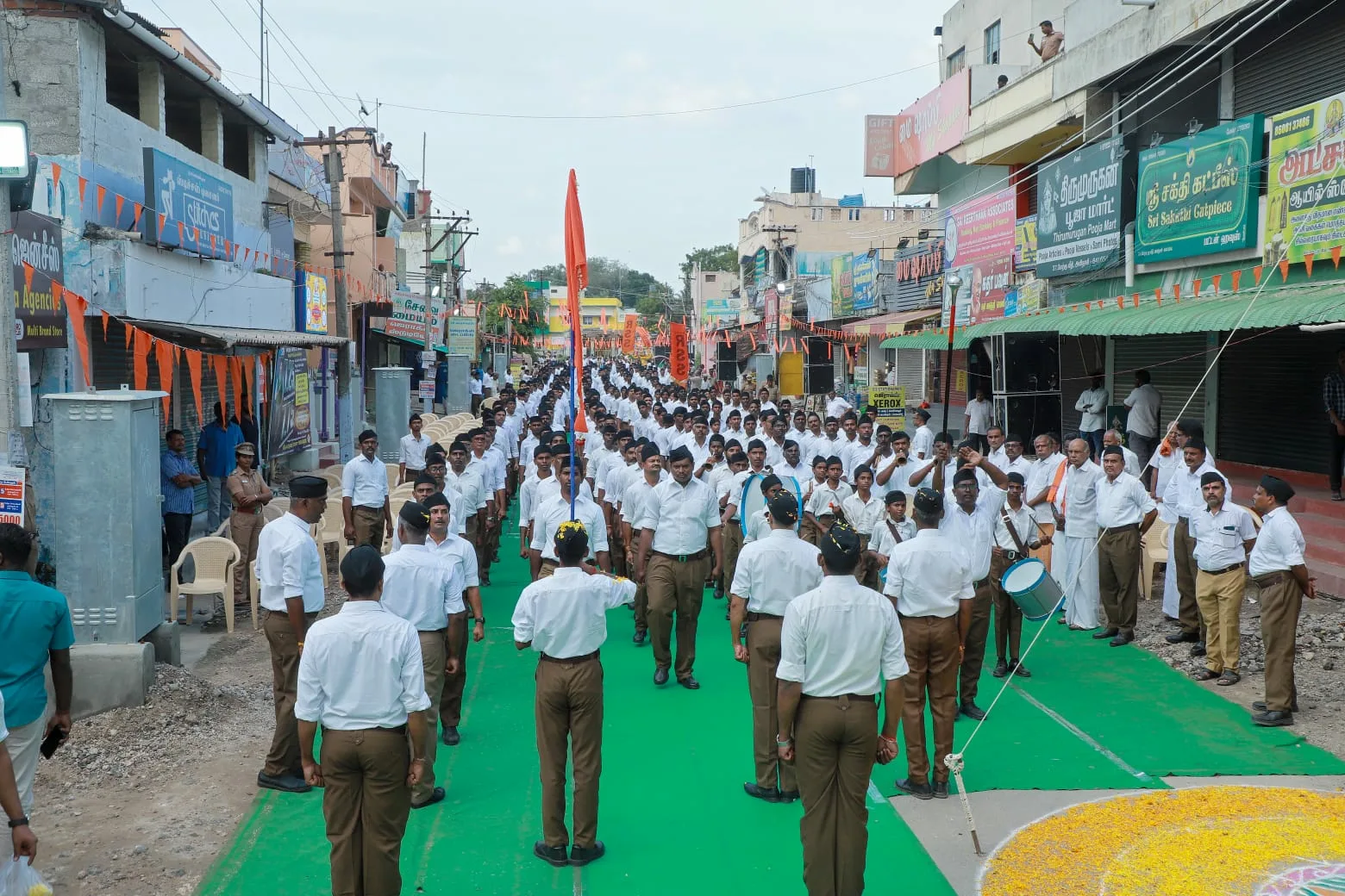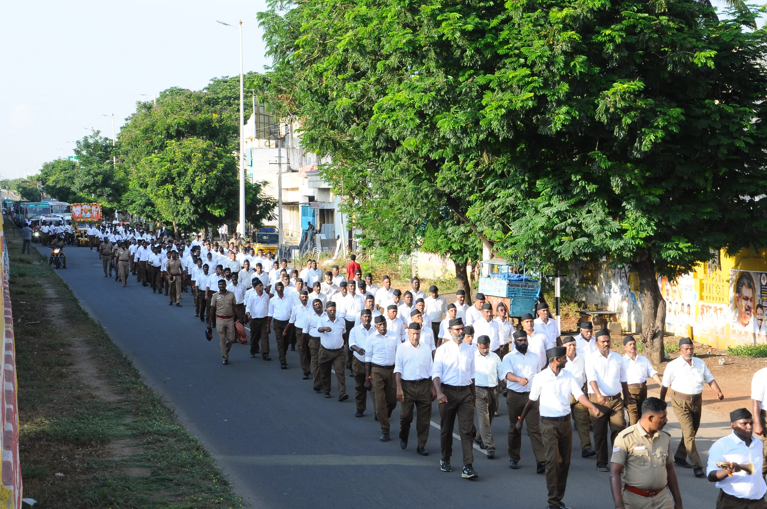 കോയമ്പത്തൂരിലെ വടവല്ലിയിലും ശിവാനന്ദ കോളനിയിലും കനത്ത പോലീസ് സുരക്ഷയിലാണ് പഥസഞ്ചലനം നടന്നത്. ശതാബ്ദിയിലേക്ക് നീങ്ങുന്ന ആര്എസ്എസിന് എതിര്പ്പുകള് അവസരങ്ങളാക്കിയാണ് ശീലമെന്ന് ഉത്തര തമിഴ്നാട് സംഘചാലക് എം. കുമാരസ്വാമി പറഞ്ഞു. സ്വയംസേവകര് അവരുടെ ലക്ഷ്യത്തിലേക്ക് ഏകാഗ്രമായാണ് നടക്കുന്നത്. ആത്മവിശ്വാസത്തോടെ ദേശീയ ഐക്യവും ദേശസ്നേഹവും വളര്ത്തിയെടുക്കുകയാണ് പ്രവര്ത്തനം. കശ്മീര് മുതല് കന്യാകുമാരി വരെയും ഗുജറാത്ത് മുതല് അരുണാചല് പ്രദേശ് വരെയും എല്ലായിടത്തും പഥസഞ്ചലനങ്ങള് നടക്കുന്ന ഒരുതരത്തിലുള്ള എതിര്പ്പും കൂടാതെയാണെന്ന് അദ്ദേഹം ചൂണ്ടിക്കാട്ടി. എന്നാല് സംഘത്തിനെതിരെ തമിഴ്നാട്ടില് വെറുപ്പിന്റെ പ്രചാരണമാണ് നടത്തുന്നത്. പഥസഞ്ചലനങ്ങള് വിലക്കുന്നത് ഭരണഘടനാ തത്വങ്ങളുടെ ലംഘനമാണെന്ന് അദ്ദേഹം ചൂണ്ടിക്കാട്ടി.