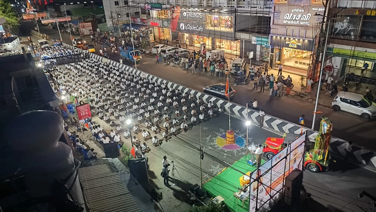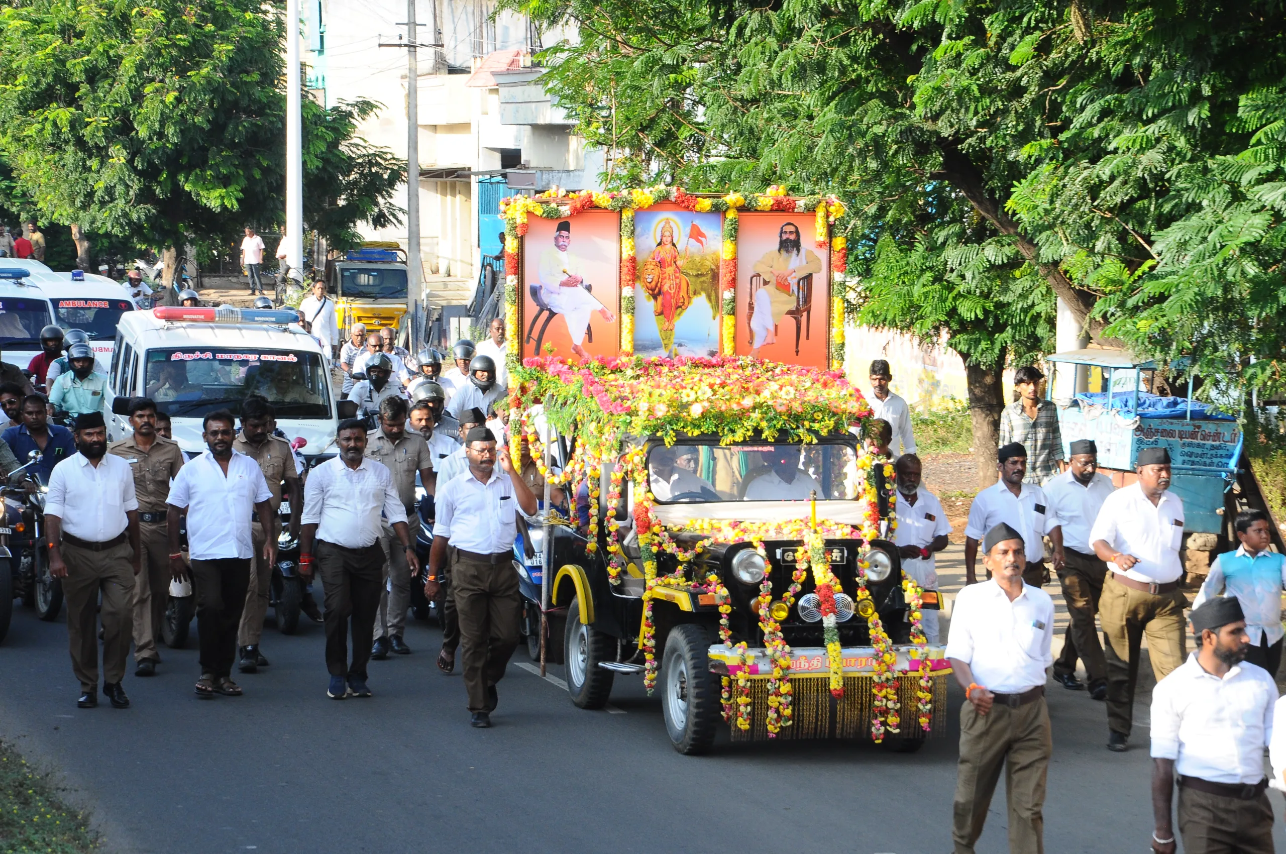 ചെന്നൈ: വിജയദശമി ആഘോഷങ്ങള്ക്ക് വിലക്കേര്പ്പെടുത്തിയ ഡിഎംകെ സര്ക്കാരിനെതിരായ നിയമയുദ്ധത്തില് വിജയിച്ച് തമിഴ്നാട്ടിവ് ആവേശം വിതച്ച് ആര്എസ്എസ് പഥസഞ്ചലനങ്ങള്. സംസ്ഥാനത്ത് 58 കേന്ദ്രങ്ങളിലാണ് നൂറ് കണക്കിന് പ്രവര്ത്തകര് പൂര്ണഗണവേഷധാരികളായി പഥസഞ്ചലനം നടത്തിയത്. ആര്എസ്എസ് പരിപാടികള്ക്ക് സര്ക്കാര് അനുമതി നിഷേധിച്ച പശ്ചാത്തലത്തില് മദ്രാസ് ഹൈക്കോടതിയുടെ ഇടപെടലിനെത്തുടര്ന്നാണ് പഥസഞ്ചലനങ്ങള് നടന്നത്. തൂത്തുക്കുടിയില് 20നാണ് പഥസഞ്ചലനം.
