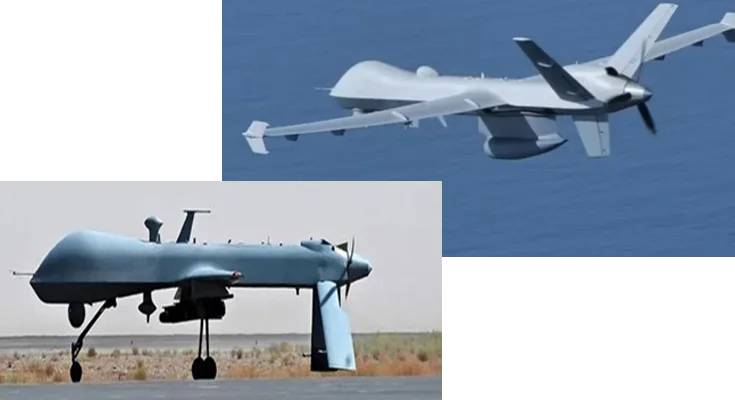 അമേരിക്കന് നിര്മ്മാതാക്കളായ ജനറല് അറ്റോമിക്സ് എയറോനോട്ടിക്കല് സിസ്റ്റംസില് (ജിഎ-എഎസ്ഐ) നിന്നുള്ള ഡ്രോണുകള് ഏറ്റെടുക്കുന്നതിനുള്ള കരാര് ഈ മാസം ആദ്യം സുരക്ഷാ കാബിനറ്റ് കമ്മിറ്റി അംഗീകരിച്ചു.ജിഎ-എഎസ്ഐ വികസിപ്പിച്ച എംക്യു 9 റീപ്പറിന്റെ വകഭേദമാണ് എംക്യു 9ബി പ്രിഡേറ്റര് ഡ്രോണ്, 40,000 അടിയിലധികം ഉയരത്തില് ഡ്രോണിന് ഒരേസമയം 40 മണിക്കൂര് പറക്കാന് കഴിയും. ഇതിന് 2,155 കിലോഗ്രാം പേലോഡ് ശേഷിയുണ്ട്. സ്ട്രൈക്ക് മിസൈലുകള് സജ്ജീകരിച്ചിട്ടുള്ള ഈ ഡ്രോണുകള് ഓട്ടോമാറ്റിക് ടേക്ക് ഓഫുകള്ക്കും ലാന്ഡിങ്ങുകള്ക്കും പ്രാപ്തമാണ്.