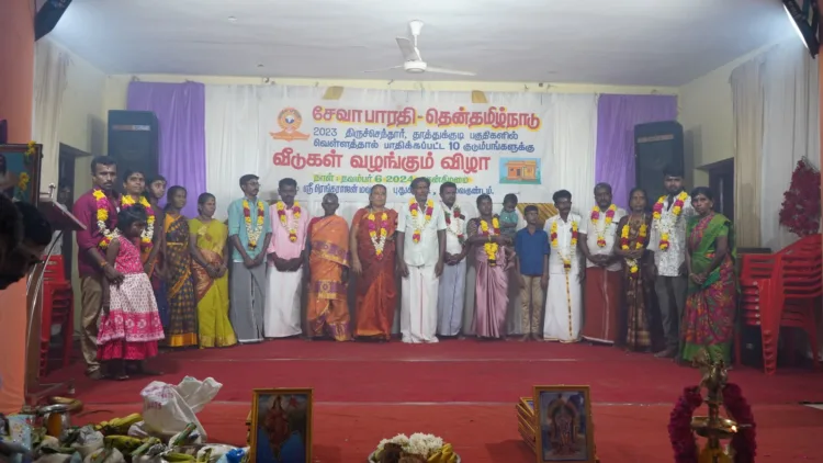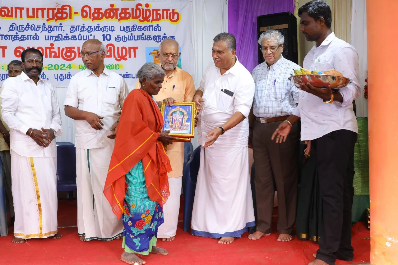 തിരുച്ചെന്തൂര്(തമിഴ്നാട്): തമിഴ്നാട്ടിലെ ദുരിതമഴയില് എല്ലാം നഷ്ടമായവര്ക്ക് സേവാഭാരതി പ്രഖ്യാപിച്ച വീടുകള് ഇന്നലെ സമര്പ്പിച്ചു. തൂത്തുക്കുടിയിലും തിരുച്ചെന്തൂരിലുമായി പത്ത് വീടുകളിലാണ് ഇന്നലെ ഗൃഹപ്രവേശച്ചടങ്ങുകള് നടന്നത്.