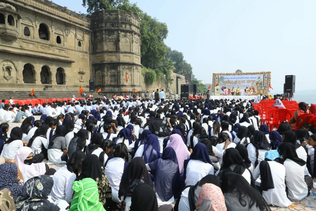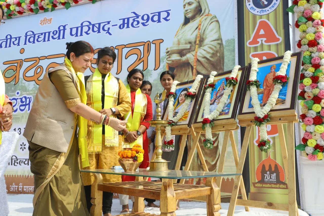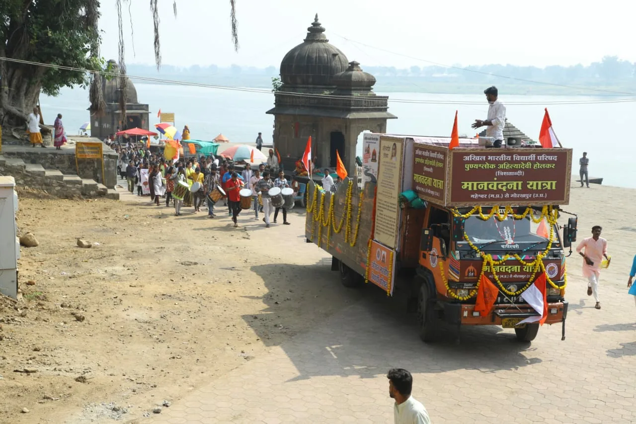 യാത്രയ്ക്ക് മുന്നോടിയായി മഹേശ്വറിലെ മണ്ണ് നിറച്ച കലശം പൂജിച്ചു. പ്രവര്ത്തകര് അഹല്യാഘാട്ടില് നര്മാദാ ആരതി നടത്തി. മഹേശ്വര് കോട്ടയുടെ ആകൃതിയില് രൂപകല്പന ചെയ്ത രഥത്തില് മഹാറാണിയുടെ പ്രതിമയും വഹിച്ചുള്ള യാത്ര 1300 കിലോമീറ്റര് സഞ്ചരിച്ച് 21ന് ഗോരഖ് പൂരില് സമാപിക്കും.