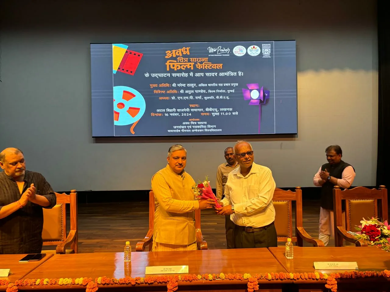ബാബാ സാഹിബ് ഭീംറാവു അംബേദ്കർ സർവകലാശാല വൈസ് ചാൻസലർ പ്രൊഫ. എൻ എം പി വർമ്മ അധ്യക്ഷത വഹിച്ച ചടങ്ങിൽ അവധ് ചിത്ര സാധനയുടെ അധ്യക്ഷൻ ഡോ.ഗോവിന്ദ് പാണ്ഡെ ചലച്ചിത്രമേളയിൽ അവതരിപ്പിച്ച ചിത്രങ്ങളെക്കുറിച്ച് വിശദീകരിച്ചു. ലഖ്നൗവിലെ ബാബാ സാഹിബ് ഭീംറാവു അംബേദ്കർ യൂണിവേഴ്സിറ്റിയിലെ അവധ് ചിത്ര സാധനയുടെയും ഡിപ്പാർട്ട്മെൻ്റ് ഓഫ് മാസ്കമ്മ്യൂണിക്കേഷൻ ആൻഡ് ജേർണലിസത്തിൻ്റെയും സംയുക്താഭിമുഖ്യത്തിലാണ് രണ്ട് ദിവസത്തെ ചലച്ചിത്രോത്സവം സംഘടിപ്പിച്ചത്.