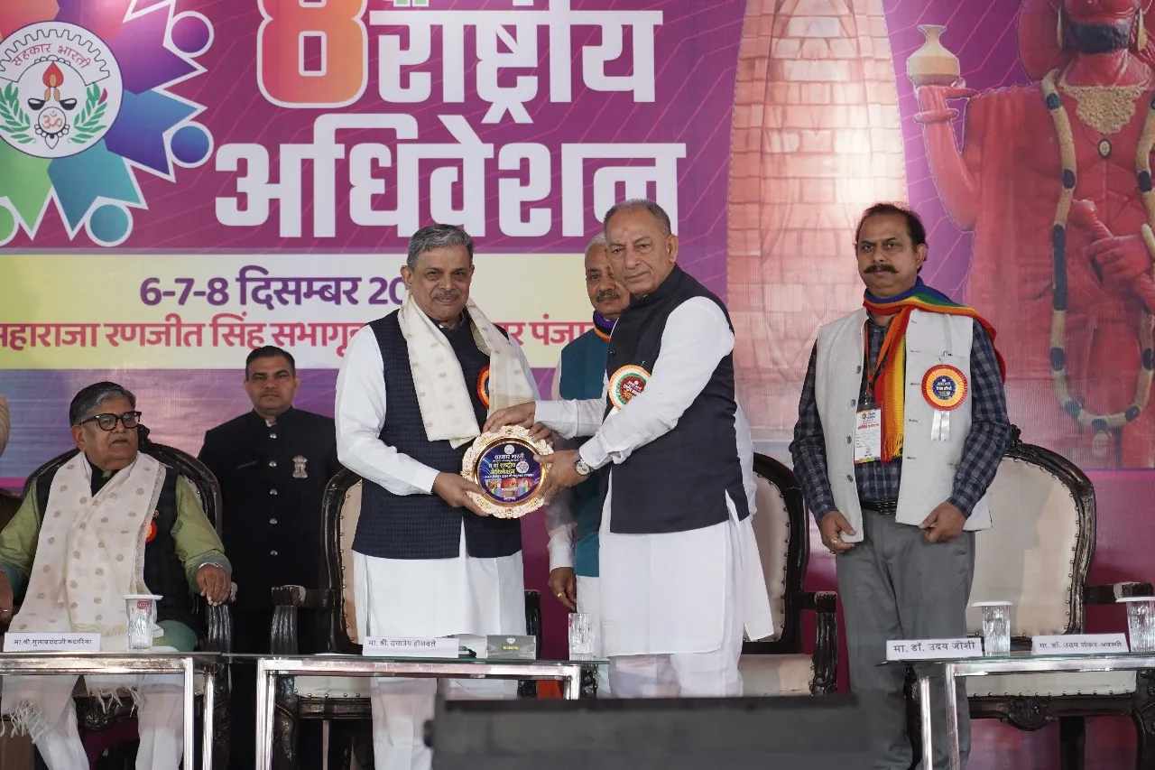 അമൃത്‌സറില്‍ സഹകാര്‍ഭാരതി ദേശീയ സമ്മേളനം ആര്‍എസ്എസ് സര്‍കാര്യവാഹ് ദത്താത്രേയ ഹൊസബാളെ ഉദ്ഘാടനം ചെയ്യുന്നു. സഹകാര്‍ഭാരതി ദേശീയ പ്രസിഡന്റ് ദീനാനാഥ് ഠാക്കൂര്‍, പഞ്ചാബ് ഗവര്‍ണര്‍ ഗുലാബ്ചന്ദ് കട്ടാരിയ, പഞ്ചാബ് അധ്യക്ഷന്‍ ബല്‍റാം ദാസ് ബാവ, ദേശീയ ജനറല്‍ സെക്രട്ടറി ഉദയ് വാസുദേവ് ജോഷി എന്നിവര്‍ സമീപം