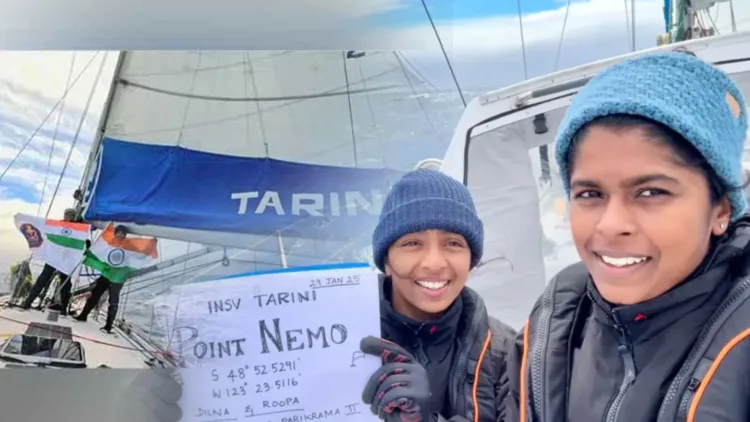 ലഫ്. കമാന്ഡര് ദില്ന കെ., ലഫ്. കമാന്ഡര് രൂപ എ. എന്നിവരാണ് കപ്പലിലുണ്ടായിരുന്ന നാവികര്. നാവിക സാഗര് പരിക്രമ രണ്ടിന്റെ ഭാഗമായി, ഐഎന്എസ്വി തരിണി ലോകത്തിലെ ഏറ്റവും ഒറ്റപ്പെട്ട സമുദ്രഭാഗത്തിലൂടെ കടന്നുപോയെന്നും വനിതാ നാവികരുടെ യാത്ര പ്രതിരോധശേഷി, ധൈര്യം, സാഹസികത എന്നിവയുടെ തെളിവാണെന്നും നാവികസേന ഔദ്യോഗിക പ്രസ്താവനയിലൂടെ അറിയിച്ചു.