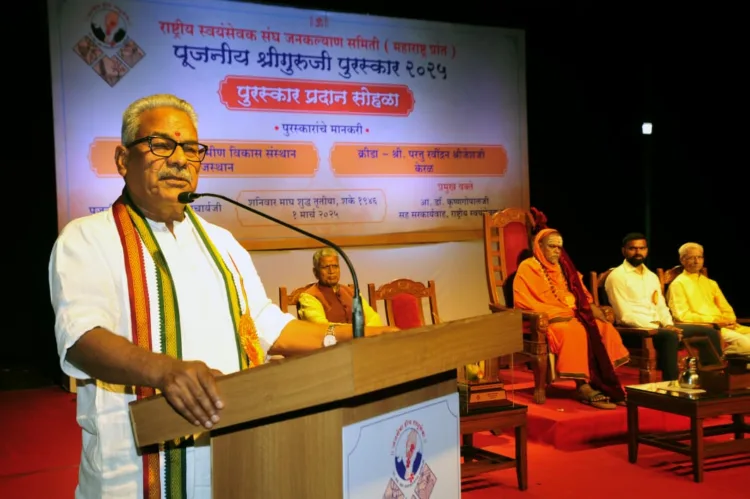 പൂനെയില് ജനകല്യണ് സമിതി’ സംഘടിപ്പിച്ച പൂജനീയ ശ്രീഗുരുജി പുരസ്കാര വിതരണ ചടങ്ങില് സംസാരിക്കുകയായിരുന്നു അദ്ദേഹം. ഭാരത ഹോക്കി ടീം മുന് ക്യാപ്റ്റന് പി.ആര്. ശ്രീജേഷിനും രാജസ്ഥാനിലെ കോട്ട ജില്ലയിലെ ‘ഗോയല് ഗ്രാമീണ വികാസ് സന്സ്ഥാനും ശ്രീഗുരുജി പുരസ്കാരം അദ്ദേഹം സമ്മാനിച്ചു. ഒരു ലക്ഷം രൂപയും പ്രശസ്തിപത്രവും മെഡലും ശില്പവുമടങ്ങുന്നതാണ് പുരസ്കാരം.