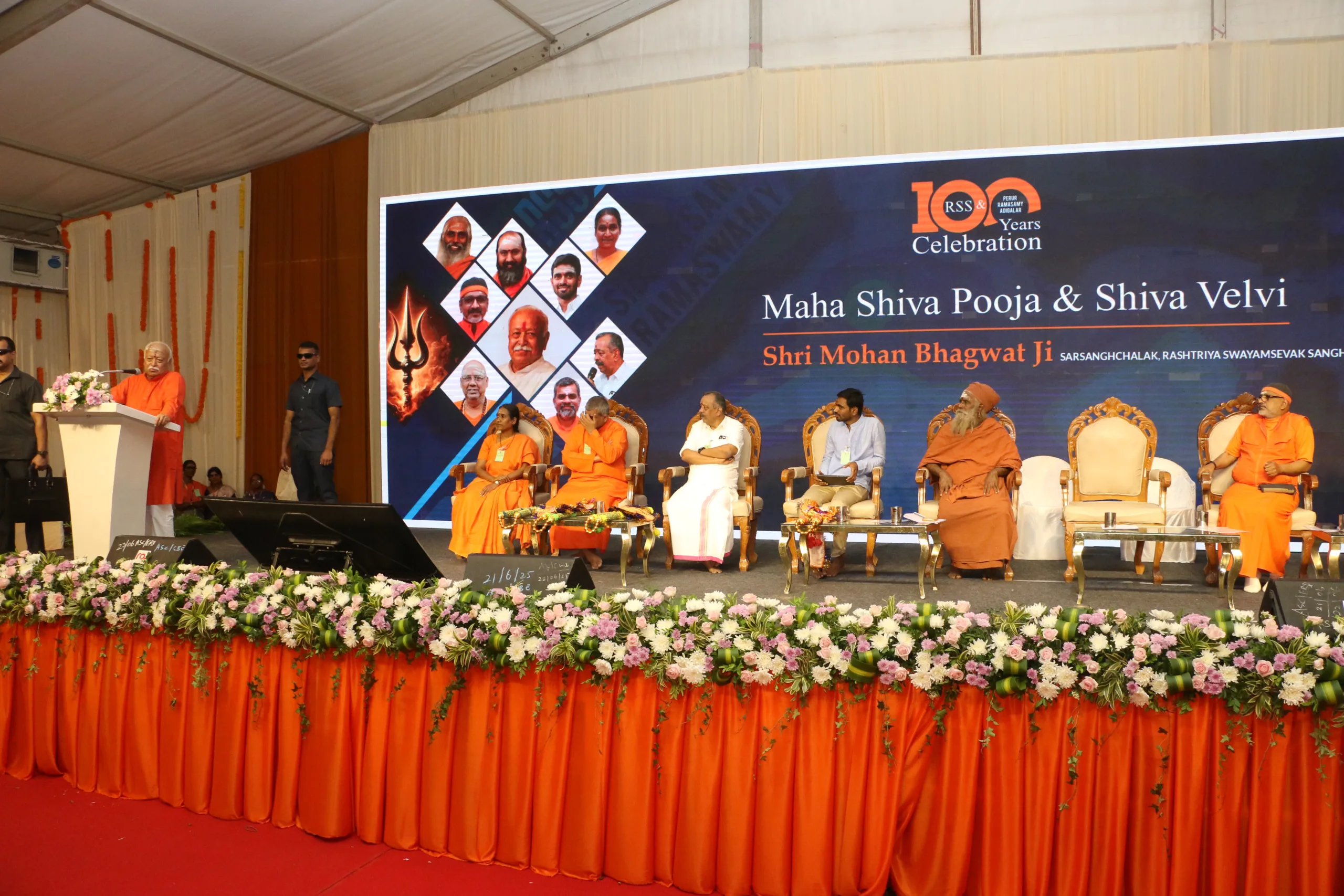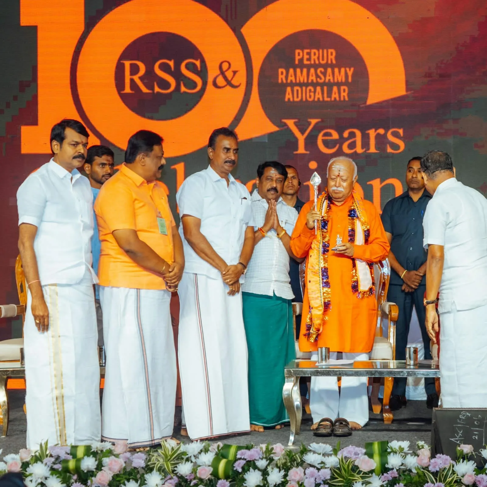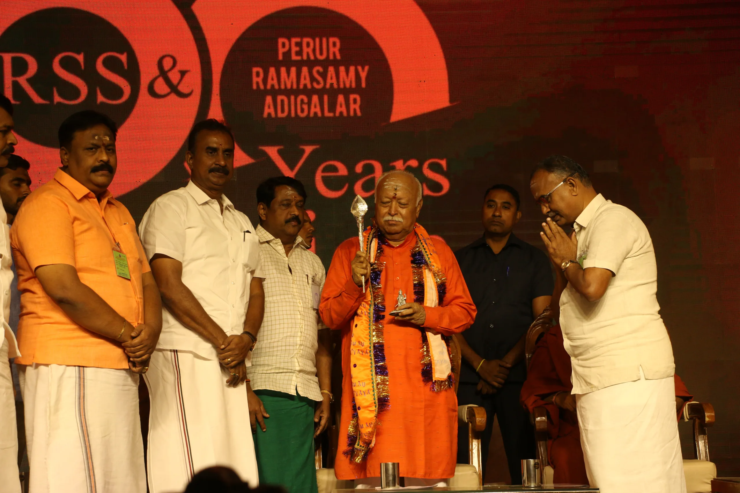 നേരത്തെ പേരൂര് ആധീനത്ത് നടന്ന ബലിതര്പ്പണച്ചടങ്ങില് മോഹന് ഭാഗവത് പങ്കെടുത്തു. പേരൂര് ആധീനം മരുതാചല അടിഗളര്, ശിരവായ് ആധീനം കുമാരഗുരുവര അടിഗളര്, ആര്എസ്എസ് അഖില ഭാരതീയ സഹ സേവാ പ്രമുഖ് എ. സെന്തില്കുമാര്, ക്ഷേത്രീയ പ്രചാരക് പി.എന്. ഹരികൃഷ്ണകുമാര്, എഐഎഡിഎംകെ മുന് മന്ത്രി വേലുമണി, ബിജെപി സംസ്ഥാന അധ്യക്ഷന് നൈനാര് നാഗേന്ദ്രന്, മുന് അധ്യക്ഷന് കെ. അണ്ണാമലൈ തുടങ്ങി നിരവധി പ്രമുഖര് പങ്കെടുത്തു.
