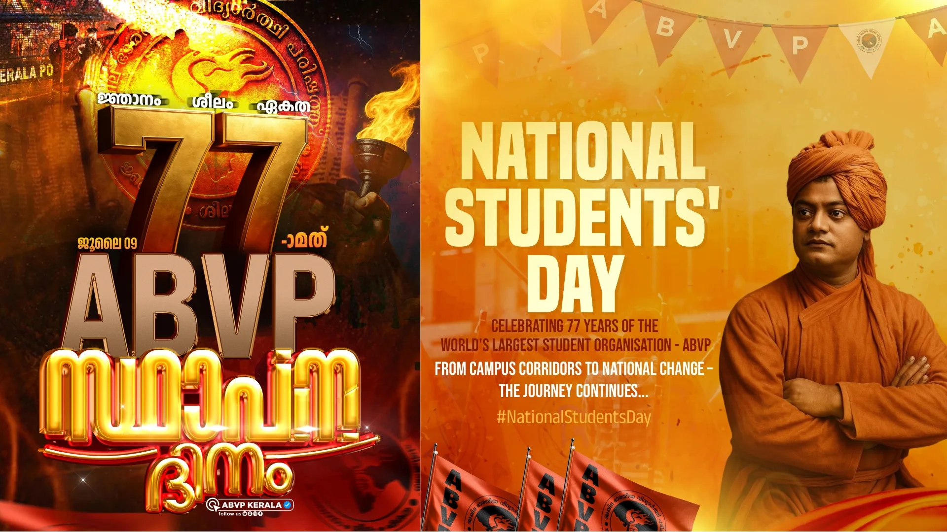 ഭാരതത്തിന്റെ ദേശീയ ആദര്ശത്തെ വിദ്യാര്ത്ഥി മനസുകളിലേക്കെത്തിക്കുകയും ജ്ഞാനം ശീലം ഏകത എന്ന മുദ്രാവാക്യത്തോടെ വിദ്യാര്ത്ഥികളില് ദേശീയതയുടെ ദീപശിഖയുയര്ത്തുക എന്ന ലക്ഷ്യത്തോടെയാണ് അഖില ഭാരതീയ വിദ്യാര്ത്ഥി പരിഷത്ത് കഴിഞ്ഞ 77 വര്ഷമായി പ്രവര്ത്തിക്കുന്നത്. 1948ല് രൂപീകരിച്ച എബിവിപി ചുരുങ്ങിയ കാലയളവില്ത്തന്നെ വിദ്യാര്ത്ഥികളുടെ നേതൃത്വം ഏറ്റെടുക്കുന്നതില് ശക്തി തെളിയിച്ചിരുന്നു. ഭാരതത്തിലെ വിദ്യാര്ത്ഥി സമൂഹത്തിന്റെ നേതൃത്വം ഇന്നും 60 ലക്ഷത്തിലധികം മെമ്പര്ഷിപ്പുള്ള ലോകത്തിലെ ഏറ്റവും വലിയ വിദ്യാര്ത്ഥി പ്രസ്ഥാനമായി വിദ്യാര്ത്ഥികളെ നയിക്കുന്നു.