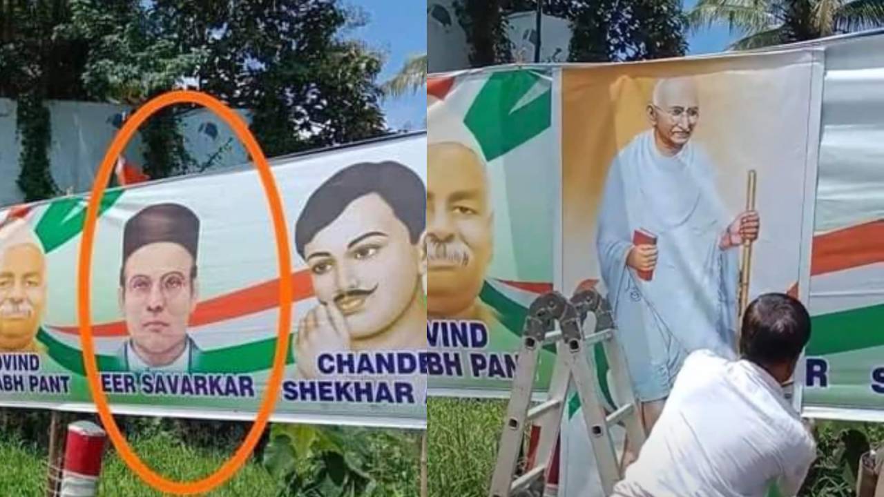 ആലുവ: രാഹുല് ഗാന്ധിയുടെ ജോഡോ യാത്രയെ വരവേല്ക്കാന് നെടുമ്പാശേരിയില് സ്ഥാപിച്ച ബാനറിലെ വീര സവര്ക്കറുടെ ചിത്രം വിവാദമായി. തുടര്ന്ന് ഗാന്ധിജിയുടെ ചിത്രം വച്ച് മറച്ചു. നെടുമ്പാശേരി എയര്പോര്ട്ട് ജങ്ഷനു സമീപം കോണ്ഗ്രസ് ചെങ്ങമനാട് മണ്ഡലം കമ്മിറ്റി സ്ഥാപിച്ച വലിയ കമാനത്തില് പതിച്ച സ്വാതന്ത്ര്യ സമരസേനാനികളുടെ കൂട്ടത്തില് സവര്ക്കറുടെ ചിത്രം വച്ചത് ഒരുവിഭാഗം കോണ്ഗ്രസുകാര് തന്നെ വിവാദമാക്കുകയായിരുന്നു. ഇതോടെ രാഹുല് എത്തുന്നതിന് തൊട്ടുമുമ്പ് മഹാത്മാഗാന്ധിയുടെ ചിത്രം തൂക്കി സവര്ക്കറുടെ ചിത്രം മറച്ചു.