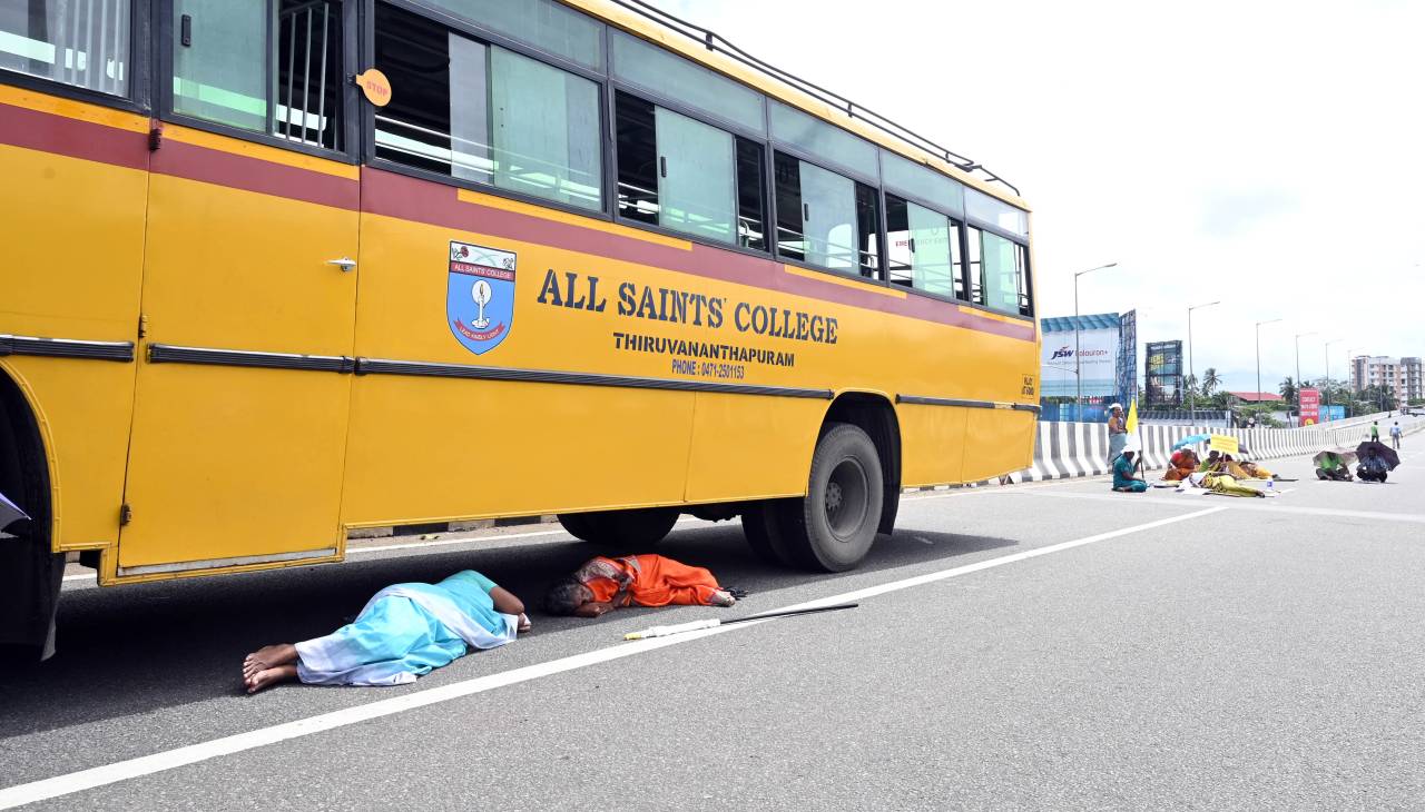 തിരുവനന്തപുരം: വിഴിഞ്ഞം തുറമുഖ നിര്മാണത്തിനെതിരെ ജന ജീവിതത്തെ ബന്ദിയാക്കി ലത്തീന് കത്തോലിക്ക സഭയുടെ നേതൃത്വത്തില് റോഡ് ഉപരോധ സമരം. ഹൈക്കോടതി ഉത്തരവിനെതിരെ നടത്തിയ നിയമലംഘന സമരം പോലീസ് കൈയും കെട്ടി നോക്കി നില്ക്കുകയായിരുന്നു. ആംബുലസുകളെയും അഗ്നിരക്ഷാസേനയുടെ വാഹനങ്ങളെ പോലും തടഞ്ഞു. കൃത്യസമയത്ത് വിമാനത്താവളത്തില് എത്താന് സാധിക്കാതെ വന്നതിനാല് പലര്ക്കും വിമാനങ്ങള് നഷ്ടമായി.