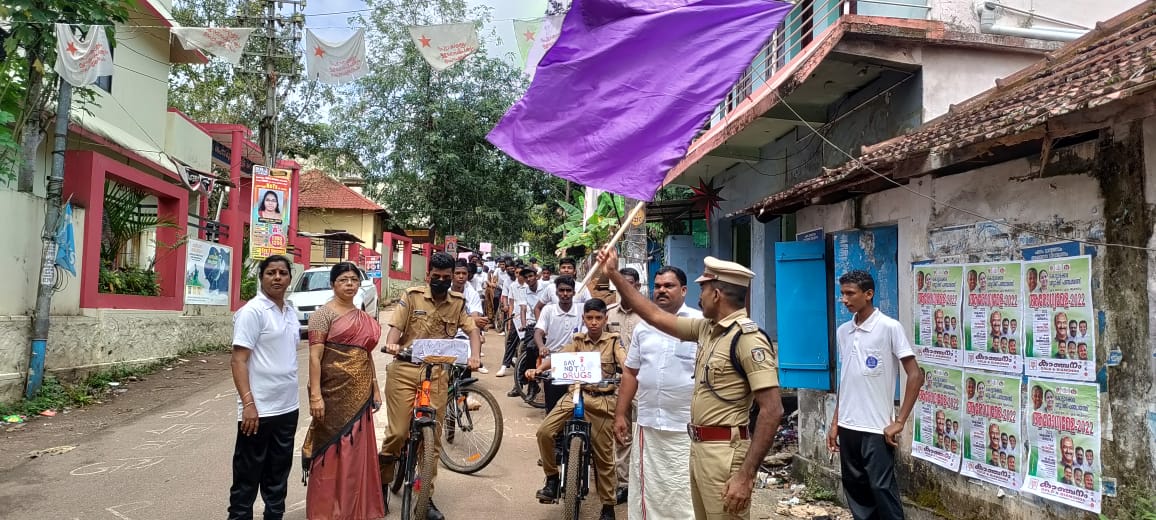 പൂയപ്പള്ളി: പൂയപ്പള്ളി ഗവ. ഹൈസ്കൂളിലെ സ്റ്റുഡന്റ് പോലീസ് കേഡറ്റുകൾ എസ് പി സി യോദ്ധാവ് പ്രവർത്തനങ്ങളുടെ ഭാഗമായി ലഹരിക്കെതിരെയുള്ള ബോധവത്കരണസൈക്കിൾ റാലി നടത്തി.പൂയപ്പള്ളി പോലീസ് സ്റ്റേഷൻ സബ് ഇൻസ്പെക്ടർഅഭിലാഷ്. എ. ആർ റാലി ഫ്ലാഗ് ഓഫ് ചെയ്തു. പൂയപ്പള്ളി ജംഗ്ഷനിൽ കേഡറ്റുകളും പൊതുജനങ്ങളും പോലീസ് ഉദ്യോഗസ്ഥരും ഓട്ടോ റിക്ഷാ ഡ്രൈവർമാരും അധ്യാപകരും പി. റ്റി. എ അംഗങ്ങളും ലഹരി വിരുദ്ധ പ്രതിജ്ഞ എടുത്തു. പ്രസ്തുത പരിപാടികളിൽ വാർഡ് മെമ്പർ രാജു ചാവടി, പി. റ്റി. എ പ്രസിഡന്റ് പ്രിൻസ് കായില,സീനിയർ അസിസ്റ്റന്റ് ഗിരിജ എ. എൻ,എ. എസ്. ഐ ബേബി മോഹൻ,ഡ്രിൽ ഇൻസ്ട്രക്ടർ ബിജുകുമാർ റ്റി. എ, സി. പി. ഒ റാണി. വി എന്നിവർ പങ്കെടുത്തു.