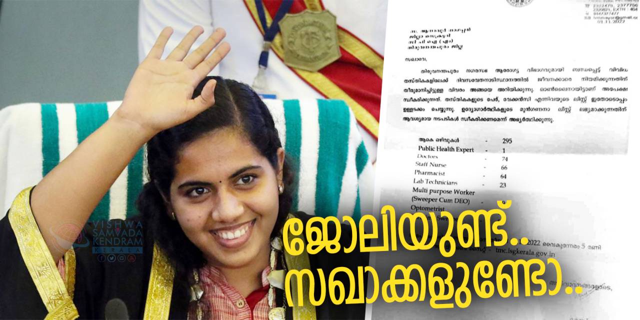‘സഖാവേ’ എന്ന് അഭിസംബോധന ചെയ്തുള്ള കത്തില് ഒഴിവുകളുടെ വിശദവിവരം നല്കിയശേഷം ഇതിലേക്ക് ഉദ്യോഗാര്ഥികളുടെ മുന്ഗണനാ പട്ടിക നല്കണമെന്ന് ‘അഭ്യര്ഥിക്കുന്നു’. അപേക്ഷിക്കേണ്ടതെങ്ങനെ, അവസാന തീയതി എന്നിവയും മേയര് ഒപ്പിട്ട കത്തിലുണ്ട്. പ്രധാന തസ്തികകള് മുതല് താല്ക്കാലിക ഒഴിവുകളില് വരെ സിപിഎം ഇഷ്ടക്കാരെ കുത്തിനിറയ്ക്കുകയാണെന്ന ആക്ഷേപം സ്ഥിരീകരിക്കുന്നതാണ് കത്ത്.
