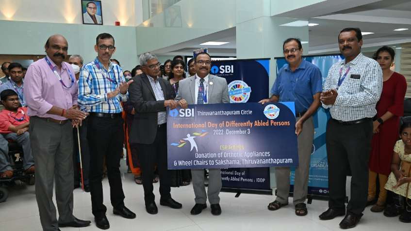 തിരുവനന്തപുരം: അന്താരാഷ്ട്ര ഭിന്നശേഷി ദിനത്തില് ഭാരതീയ സ്റ്റേറ്റ് ബാങ്ക്, ചീഫ് ജനറല് മാനേജര്, (കേരള സര്ക്കിള്) വെങ്കിട്ട രമണ ബായ് റെഡ്ഢി സക്ഷമ ചാരിറ്റബിള് സൊസൈറ്റിയുമായി സഹകരിച്ച് ഭിന്നശേഷിക്കാര്ക്കായി വീല് ചെയറുകള്, ഫിസിയോതറാപ്പി ഉപകരണങ്ങള്, ഓര്ത്തോട്ടിക് ഉപകരണങ്ങള് എന്നിവ സൗജന്യമായി വിതരണം ചെയ്തു.